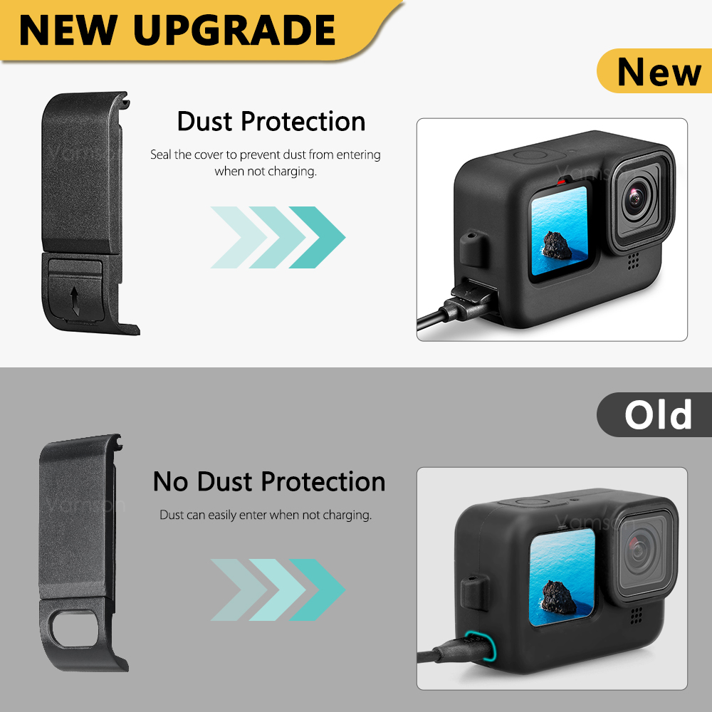 1. Защитите свою черную экшн-камеру Gopro Hero 12/11/10/9 от пыли, царапин и брызг гальки, обеспечивая защиту, похожую на кожу. При съемке вы можете заряжать, не снимая аккумулятор, что позволяет заряжать во время съемки.