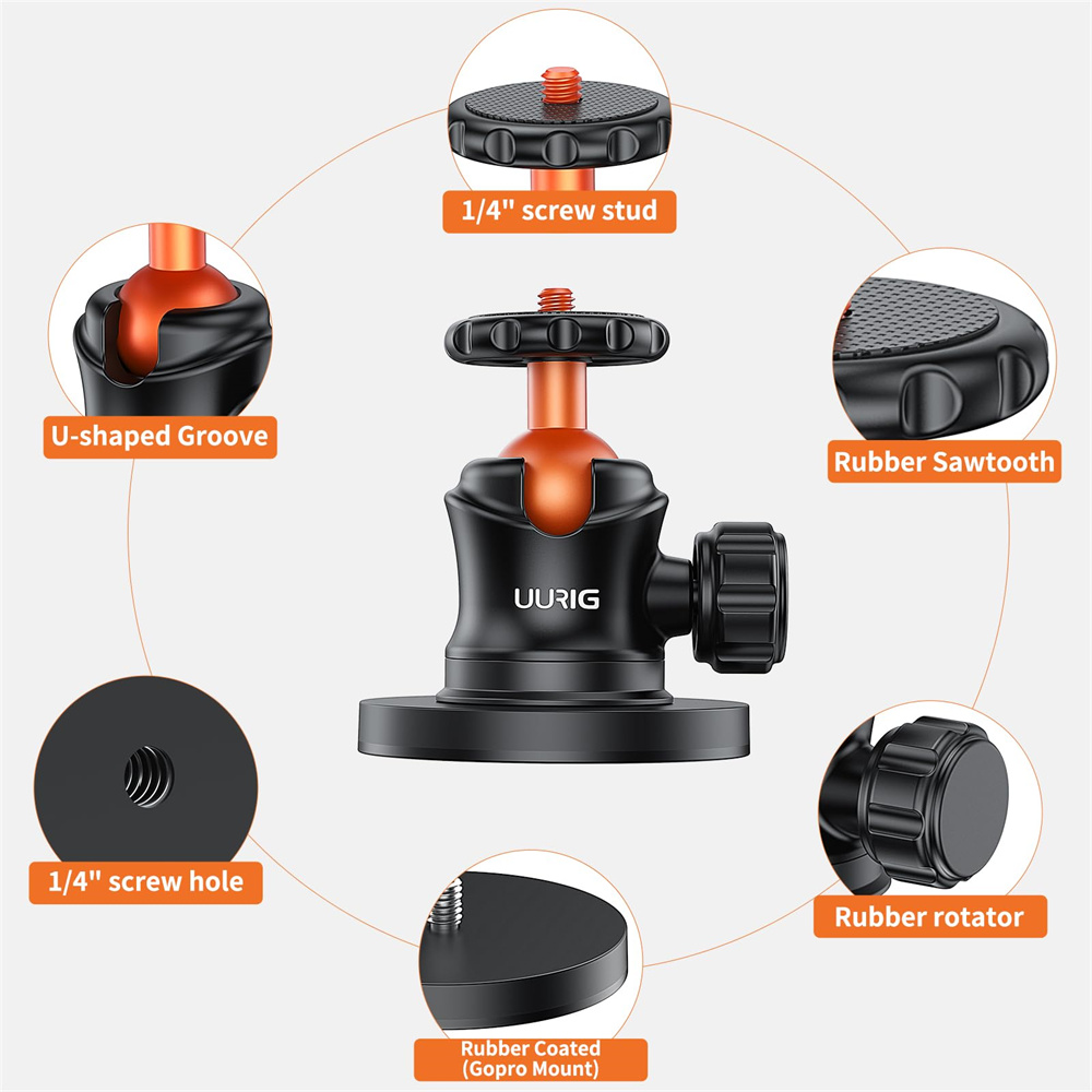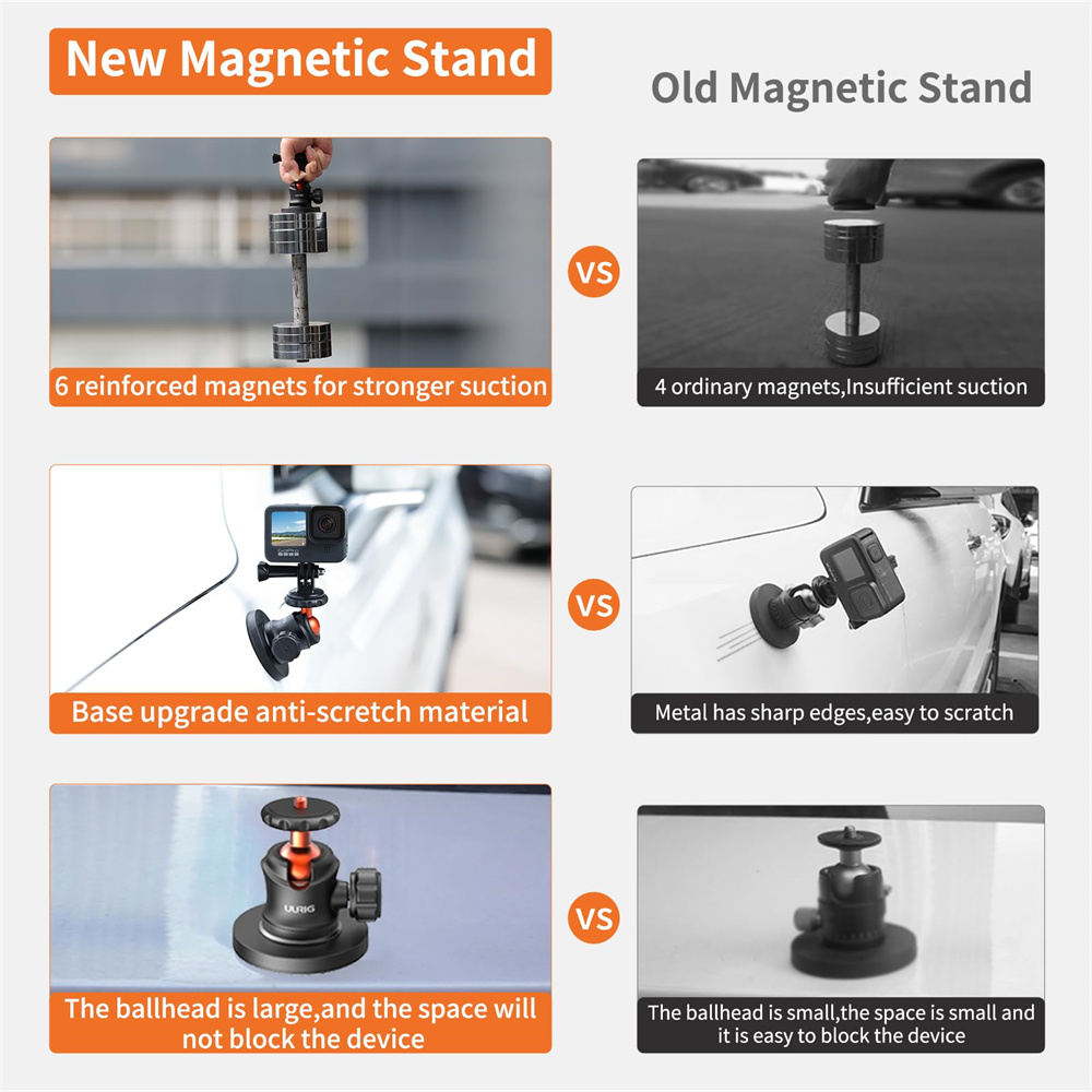 【Сильное магнитное крепление камера】Подставка для магнитного крепления UURIG обладает сильной адсорбционной силой, которую можно легко прикрепить к металлам или другим магнитным поверхностям. Установка проста, никаких отверстий или инструментов не требуется.
