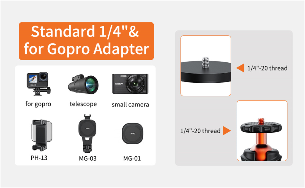 【Сильная совместимость, прочный и долговечный】Универсальный Комплект Подставки для магнитного крепления с шпилькой с наружной резьбой 1/4 ''-20, совместимость с GoPro Max Hero 12 11 10 9 8 7 6 5/D-J-I Osmo/AKASO/SJCAM/Экшн-камерой, заполняющими лампами и смартфоном. Вы также можете использовать его на любом устройстве с гайкой 1/4 дюйма. Более прочный, водонепроницаемый, устойчивый к ржавчине и коррозии.