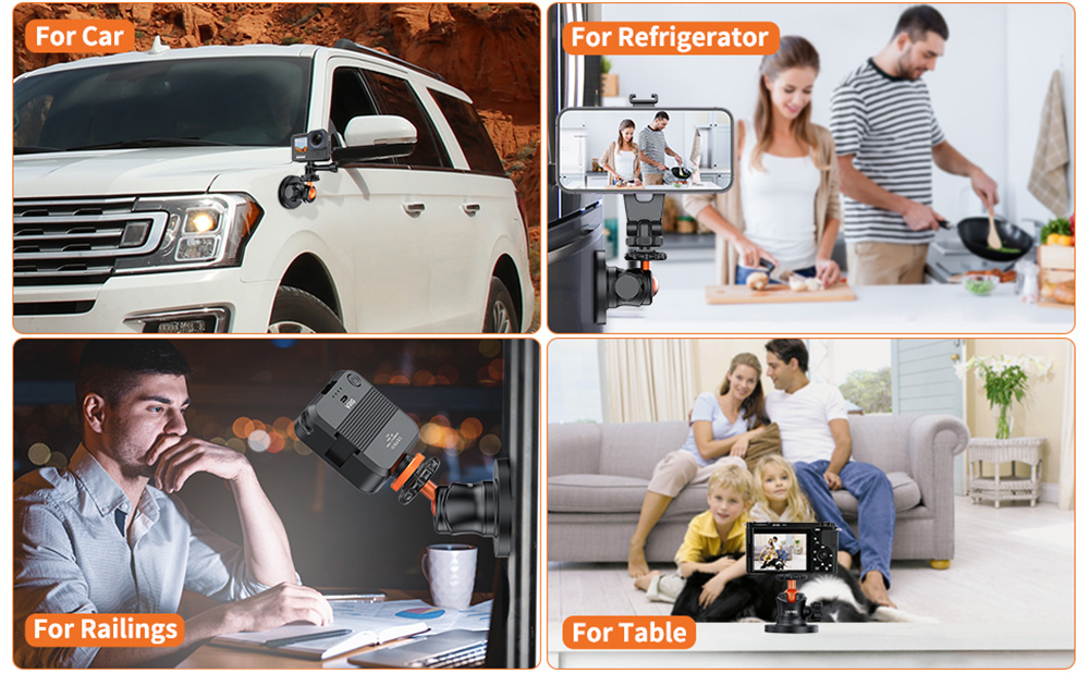 【Регулируемая шаровая Головка с поворотом на 360 ° 】Наше магнитное крепление для камеры использует универсальную шаровую головку с возможностью поворота на 360 °. Вы можете регулировать различные углы для стрельбы (горизонтальная съемка, вертикальная съемка, съемка под низким углом, съемка под высоким углом) Затяните ручку регулировки на шаровой головке, вы можете заблокировать под определенным фиксированным углом. Позвольте вам делать самые идеальные снимки и записывать прекрасные моменты в вашей жизни.