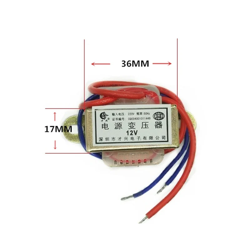 Совместимость с CQC,CCC,CE Название продукта: трансформатор Напряжение на входе: 220 В переменного тока Выходное напряжение: 6 В/9 В/12 В/15 В/18 В/24 В/30 В/36 В Частота: 50 Гц-60 Гц Мощность: 2 Вт Размер изделия: 36*17*30 мм (Д * Ш * В) (Размер см. Изображение) Частотная характеристика: низкая частота Структурный стиль: однотонный трансформер Одиночное напряжение, вход 2 провода, выход 2 провода; Двойное напряжение, вход 2 провода, выход 3 провода. Примечание: Красный провод-это входной провод, синий провод-выходной провод. Посылка входит: 1 шт. X на ваш выбор