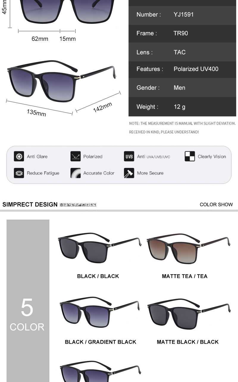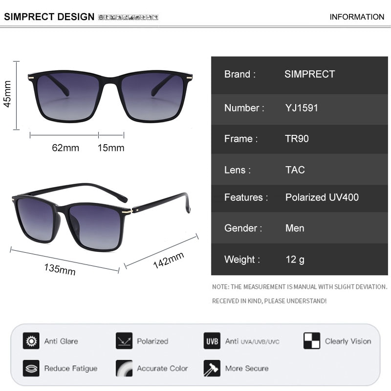 SIMPRECT Мужские прямоугольные солнцезащитные очки , прямоугольные поляризационные очки в винтажном ретро-стиле с защитой от ультрафиолета UV400, 2022