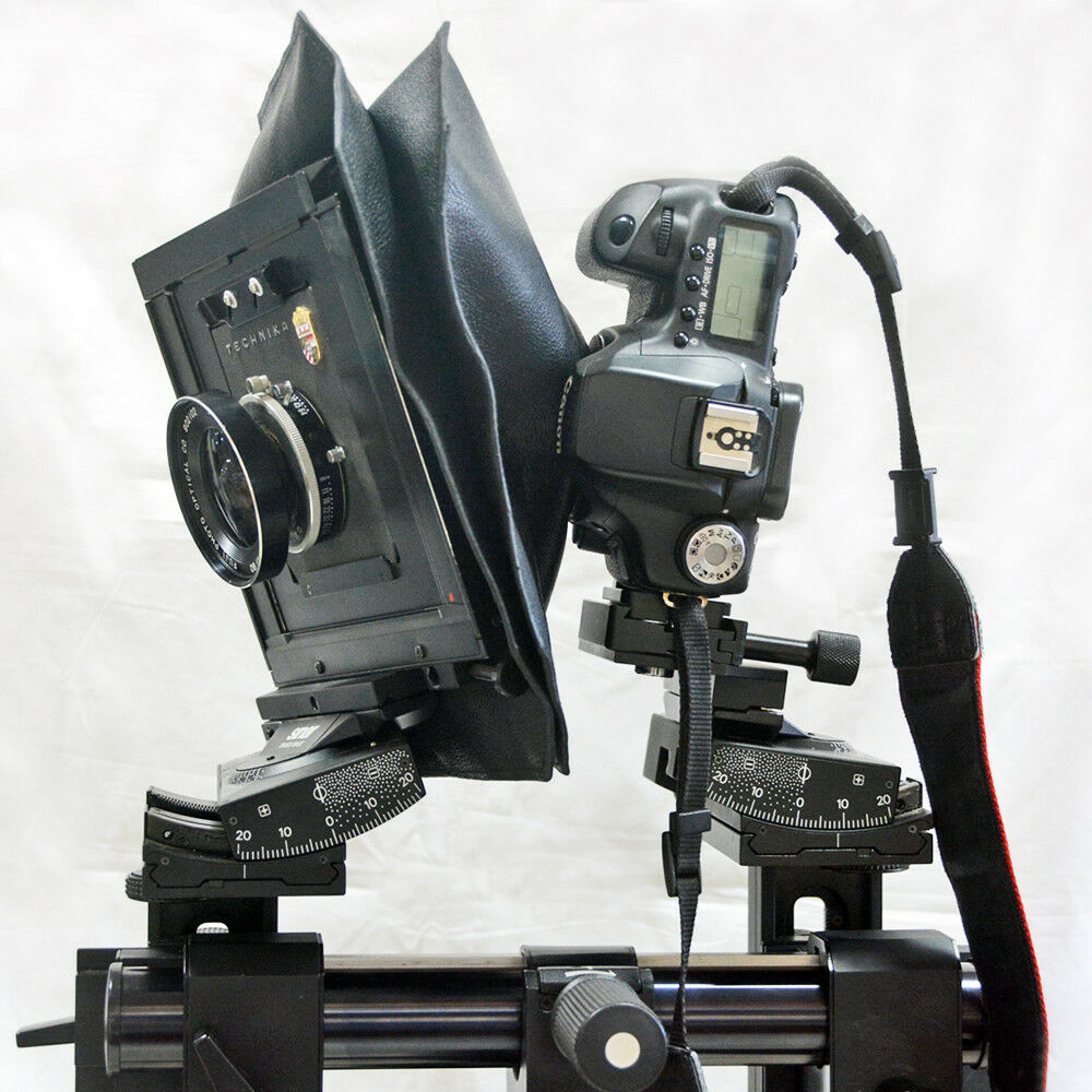 Это может позволить вам использовать функцию камеры с Большой рамкой из комплекта Sinar с цифровой камерой. Этот комплект позволяет снимать 3-4 изображения по вертикали и горизонтали, а затем использовать программное обеспечение для объединения всех изображений, это становится очень огромным цифровым изображением. Он также подходит для камер Sinar X.