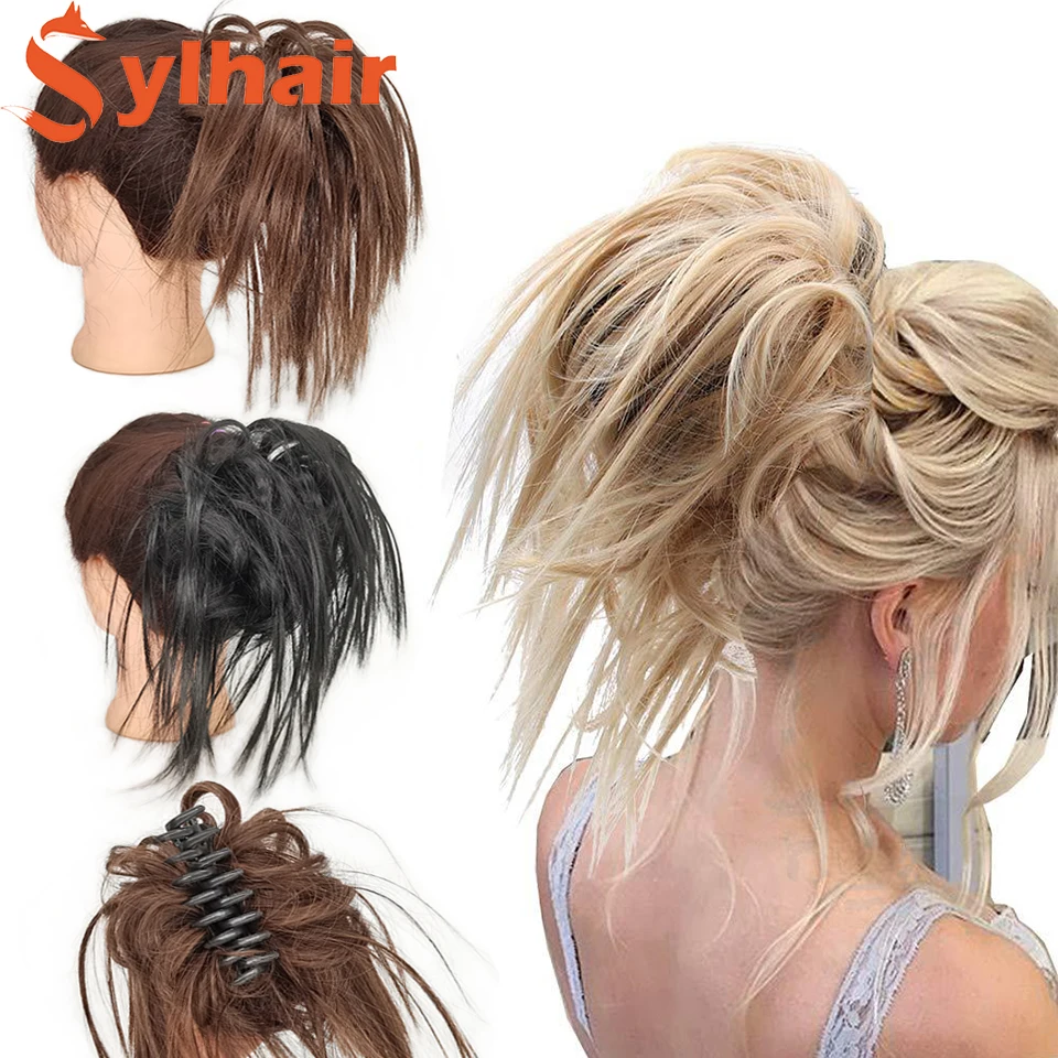 Синтетический шиньон silhair, спутанные шиньоны, зажим для волос в пучок, прямые искусственные волосы из натурального высокотемпературного волокна