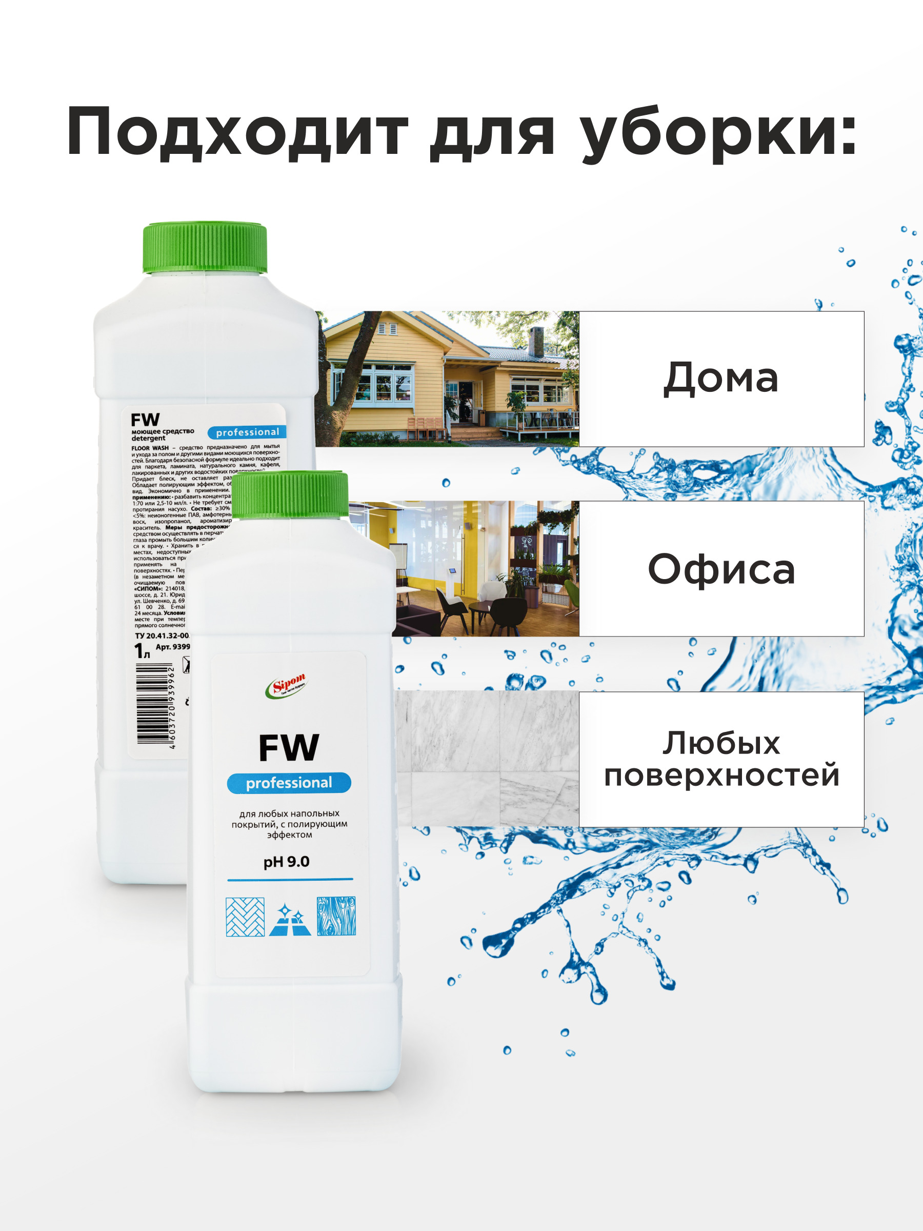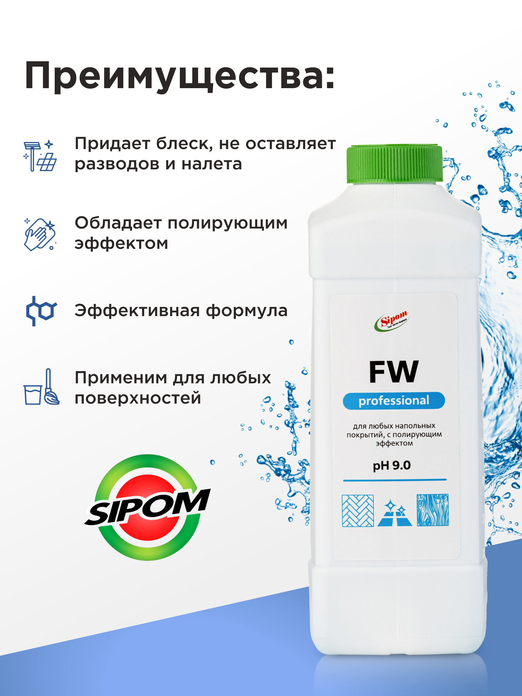 Sipom Floor Wash / Средство для мытья пола с полирующим эффектом 1л