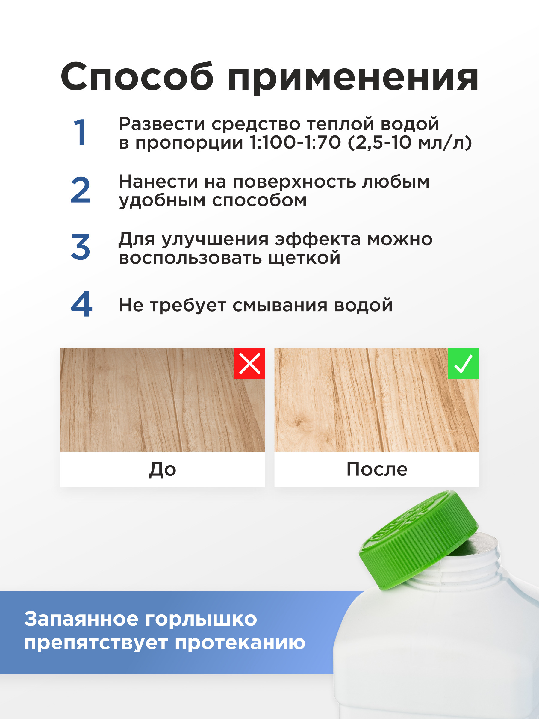 Назначение моющего, чистящего средства Для пола/ламината