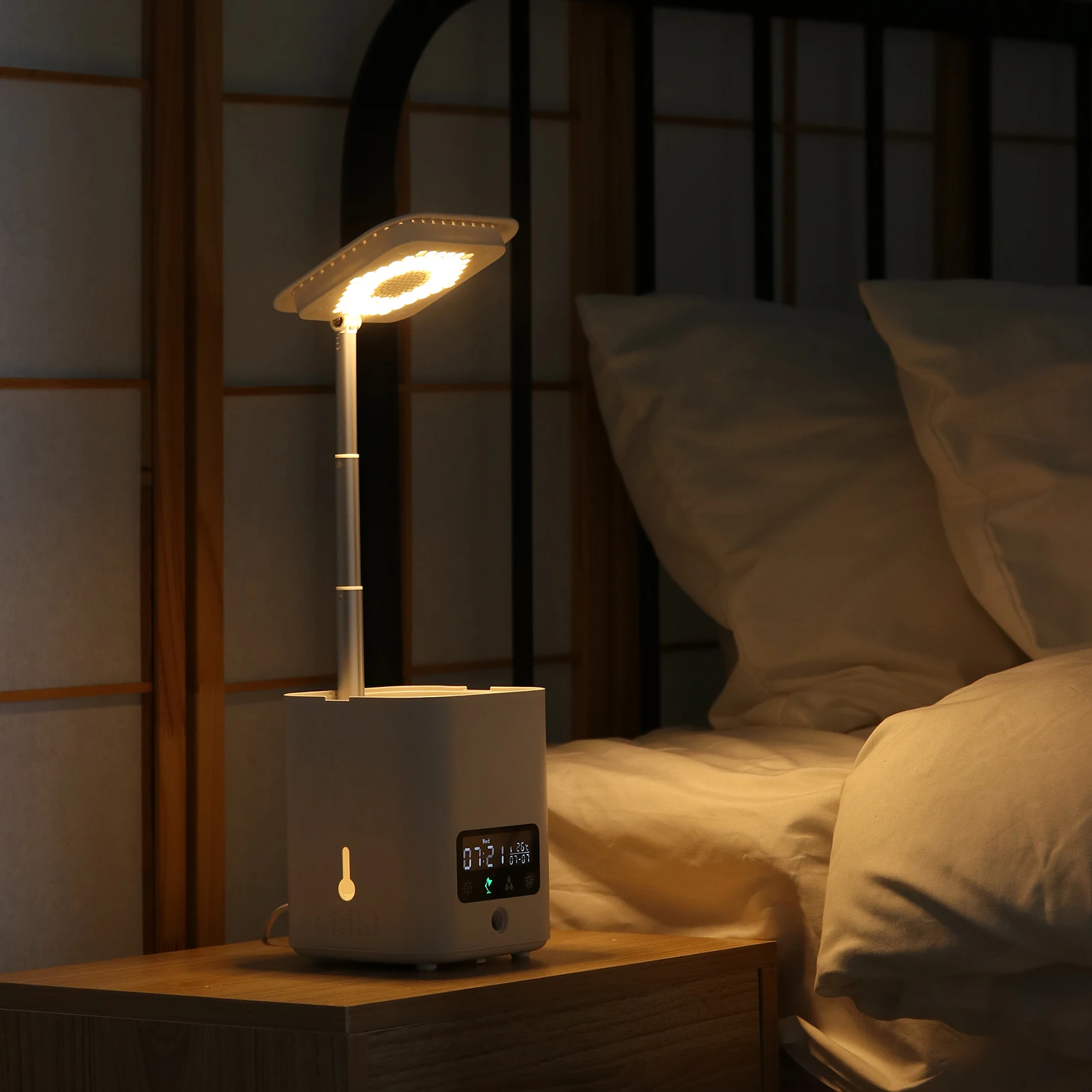 1:[умный светодиодный светится]: светодиодный интеллектуальная работа с сенсорным экраном. Регулируемое освещение и время 12 часов, питание от высоких люменов полного спектра светодиодных ламп, которые подпитывают ваше растение. Идеальная настольная лампа, которая не только снимает стресс, но и генерирует кислород O2. Бактериостатическая скорость составляет до 99%.
