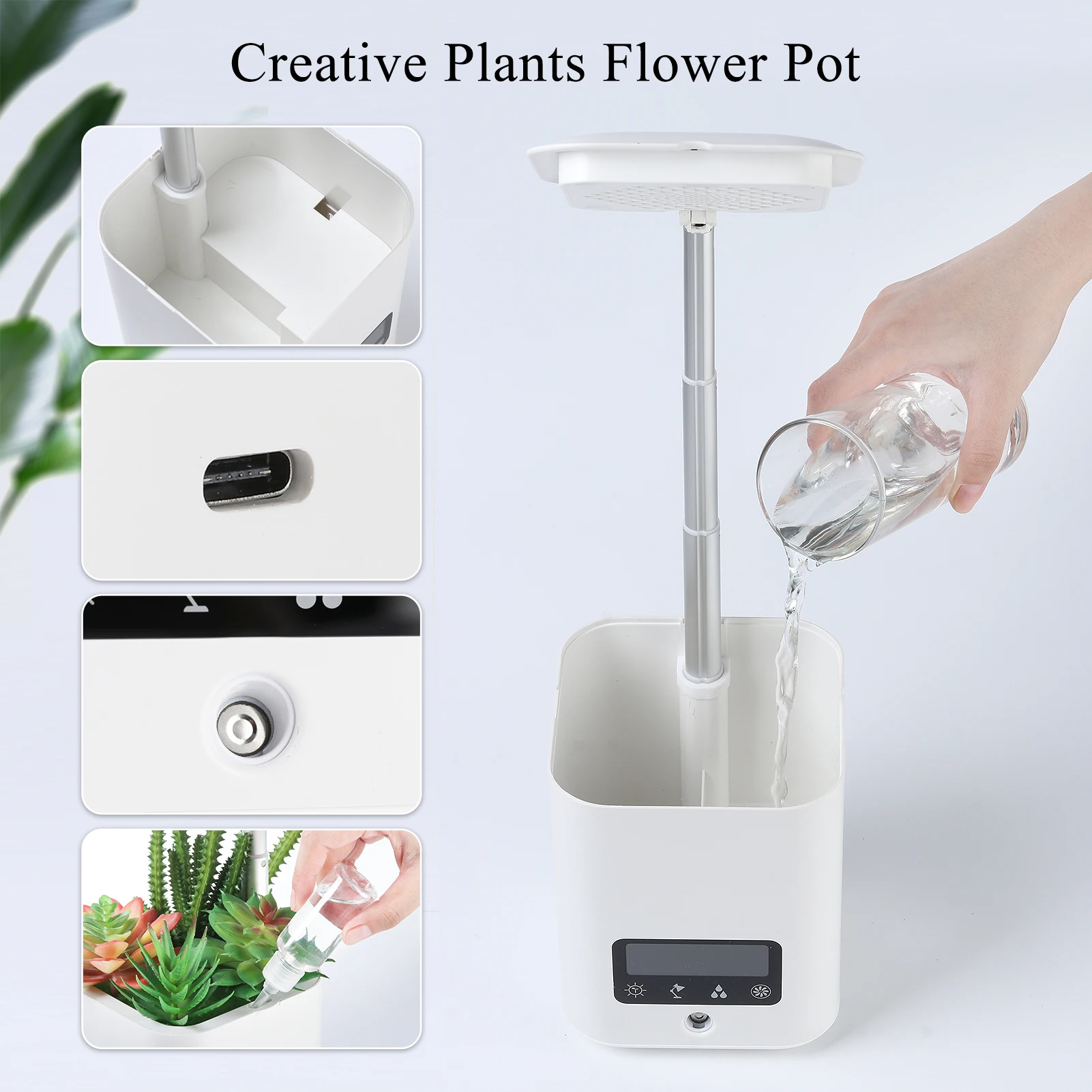 2:[самополивающиеся плантаторы]: этот маленький светодиодный для выращивания растений полностью автоматический и обеспечивает воду в соответствии с уровнем влажности в грунте. Выберите любую растущую среду, семена стручков, гидропоники или даже хорошую старую почву. Суккуленты и кактусы, травы.
