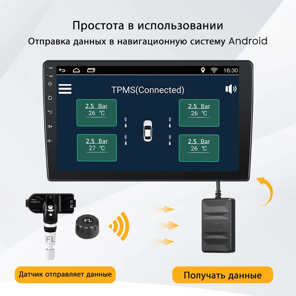 -Наше устройство TPMS не поддерживает подключение по Wi-Fi и Bluetooth. Его можно подключить только к системе android вашего автомобиля через usb-порт.