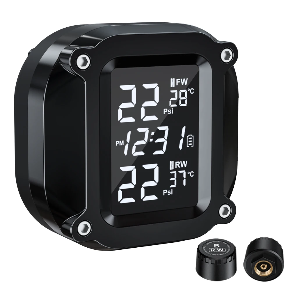 Ouspow TPMS Контроль давления в шинах мотоциклов Система сигнализации температуры в шинах ЖК-дисплей