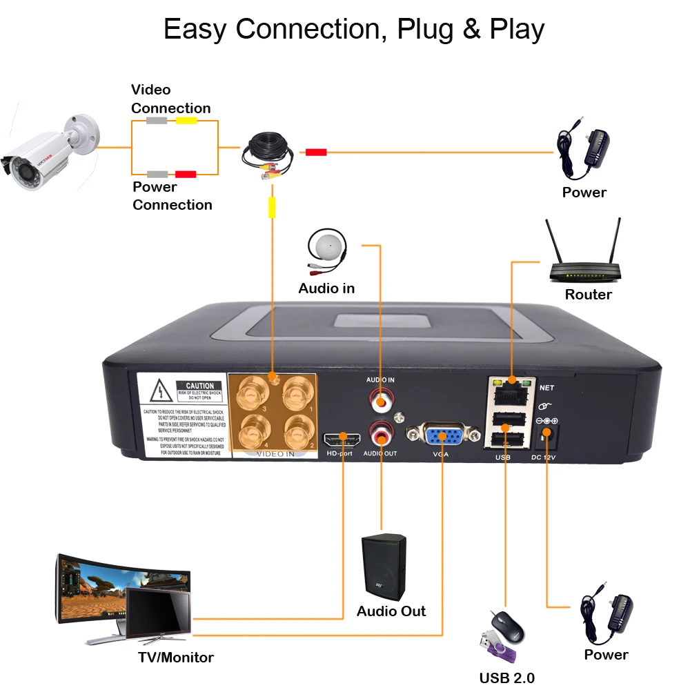 Его можно легко и быстро настроить любым. Мгновенно просматривайте видео в реальном времени с помощью компьютера, планшета или телефона из любого места.4CH 1080P HD-AHD DVR