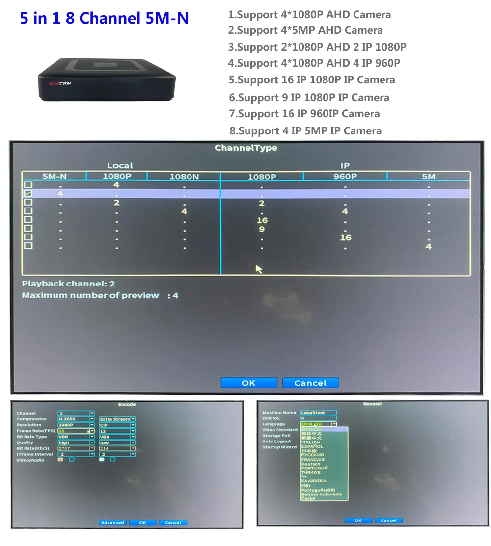 5-n dvr отправляет одну версию случайным образом. Две версии системы, если вам нужно уточнить, пожалуйста, подтвердите с нами8CH 5m-N HD-AHD DVRIP66 водонепроницаемый