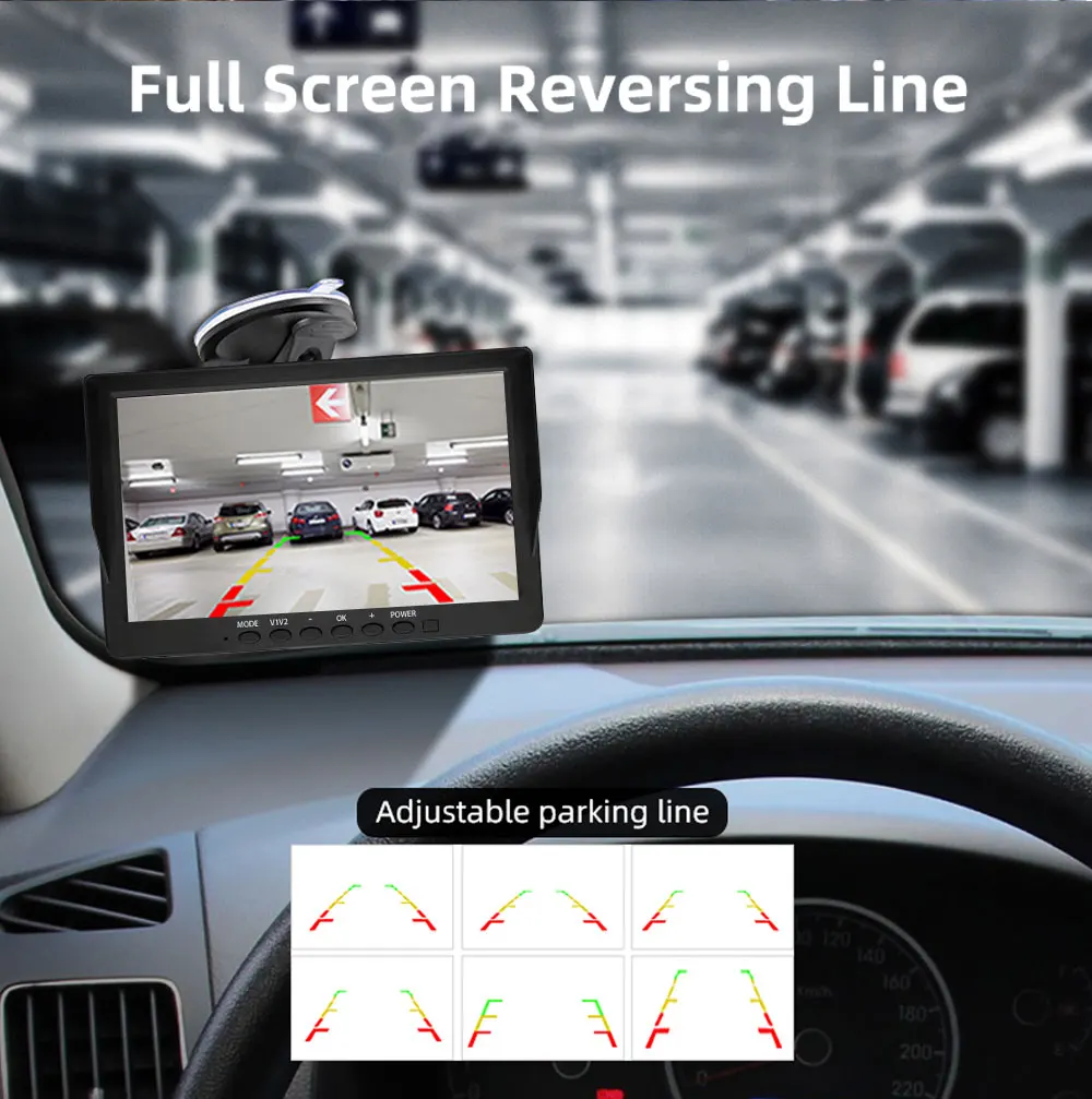 Монитор может отображать реверсивную линию при движении задним ходом. Двусторонний вход AHD, приоритетное отображение хода задним ходом, после установки парковочного места с камерой изображение заднего хода будет автоматически переключаться при включении передачи. Поддержка самостоятельной установки реверсивной линии.