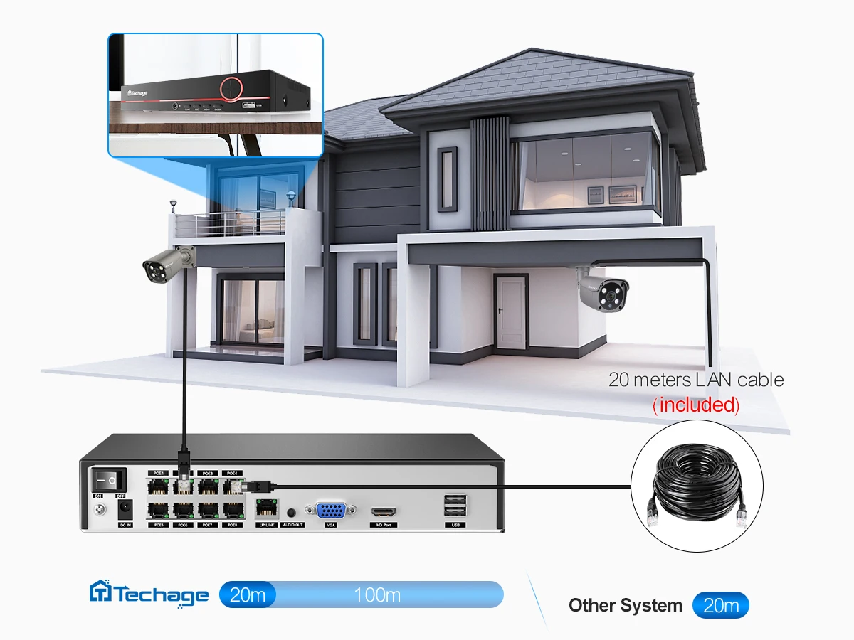 1. Наша новая 5-мегапиксельная система камер POE. 8-канальный дизайн NVR, поддержка подключения до 8 камер, вы можете купить IP-камеры Techage POE, чтобы расширить вашу систему видеонаблюдения.