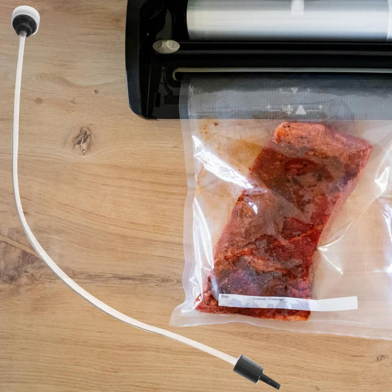 Изготовленный из пластика, этот вакуумный шланг прочный, надежный и устойчивый к повреждениям, что обеспечивает длительное использование без частой замены. Сэкономьте время и силы с помощью этого удобного инструмента, так как он легко обеспечивает вакуумную упаковку, сохраняя ваши продукты свежими и продлевая срок их хранения.