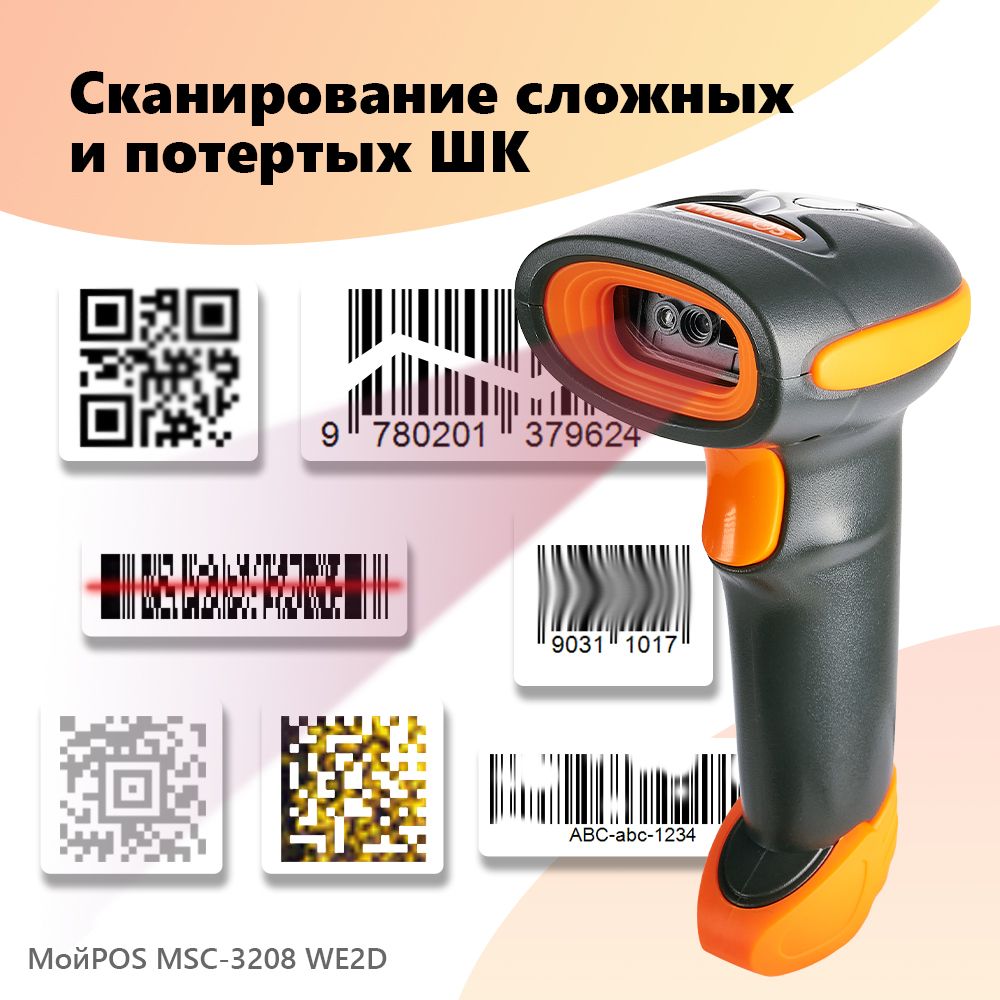 Сканер штрих кода беспроводной МойPOS MSC-3208WE 2D для маркировки и ЕГАИС USB