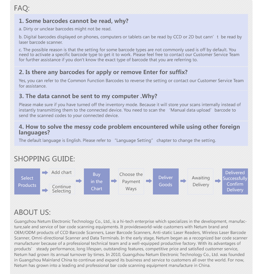 2. Два режима работы: NETUM беспроводной сканер штрих-кода встроенный в память 256 Кб, более 2600 кодов, чтение без подключения;
