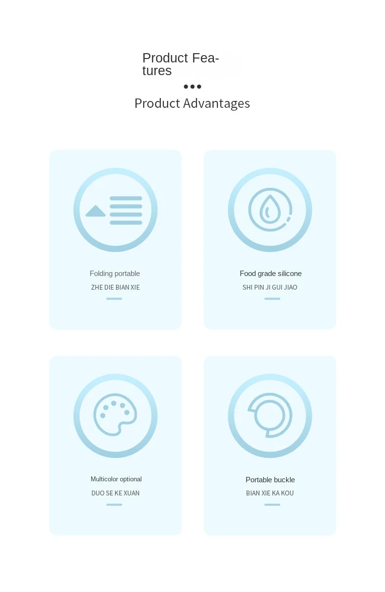 • Складная конструкция для удобного хранения:Эту бутылку для воды можно легко сложить и хранить в сумке или кармане, что делает ее удобной для переноски.