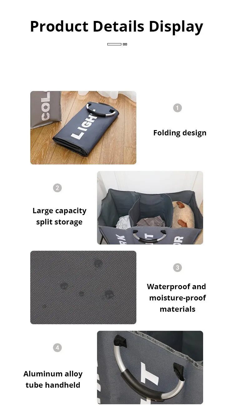 • Водонепроницаемая прочная ткань Оксфорд :Эта корзина для белья, изготовленная из водонепроницаемой прочной ткани Оксфорд, идеально подходит для хранения мокрой одежды без протечек.