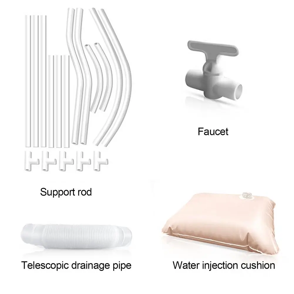 1. Простота установки, удобство хранения, легко сливается после купания. Этот Набор для ванны включает 12 кронштейнов, 1 подушку для впрыска воды, 1 сливной клапан и 1 сливную трубу.