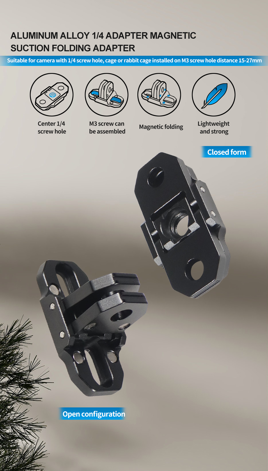 Основание адаптера с двойным интерфейсом имеет отверстие для крепежного винта 1/4 дюйма и M3, которое можно напрямую и быстро подключить к удлинителю.