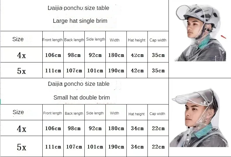 4XL с одним козырьком: длина переднего пальто 106 см, длина спинки 98 см, длина стороны 92 см, ширина 180 см, высота кепки 42 см, ширина кепки 35 см