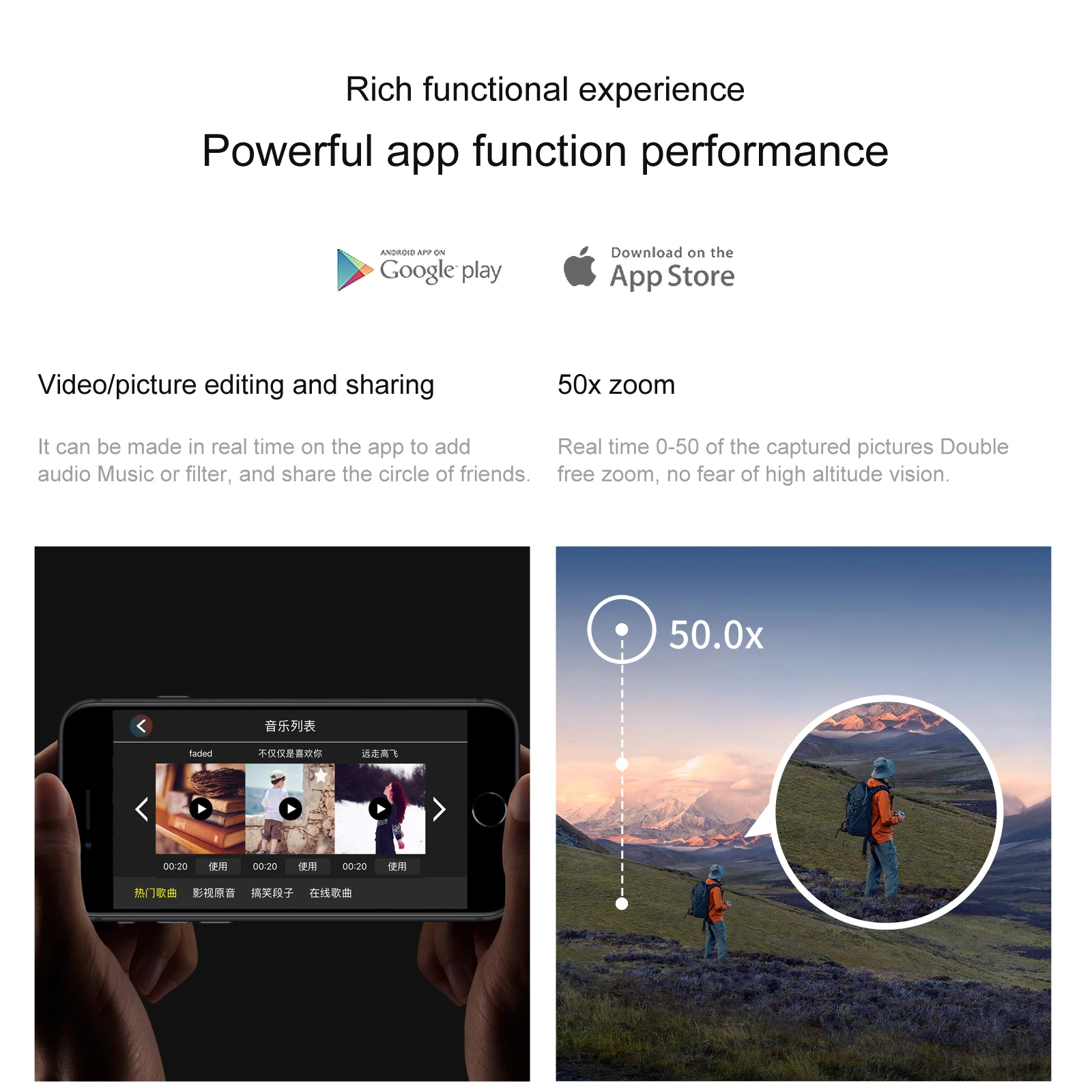Камера: фотосъемка жестами, видео, режим, появляющаяся остановка, полет по траектории, распознавание силы тяжести, музыка, 50-кратная камера, автоматическая фотосъемка.
