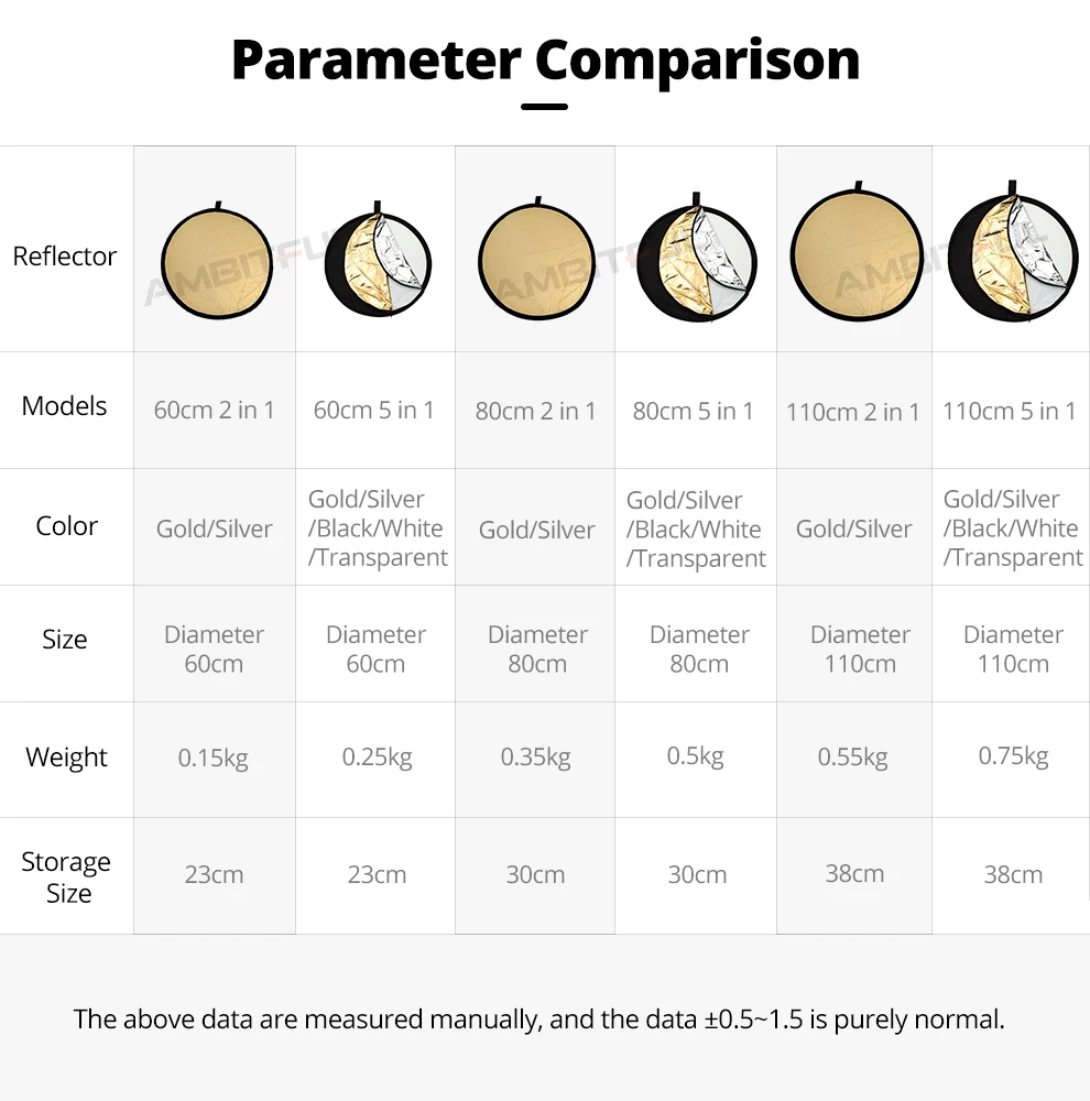 Нужен ли вам хороший отражатель освещения для создания замечательного эффекта изображения во время студийной или наружной съемки? Почему бы вам не попробовать этот складной отражатель? Это помощник для вашей работы. Он позволяет полностью контролировать светильник действительно аккуратным и простым способом. Этот гибкий светоотражатель можно аккуратно сложить в сумку и просто занять немного места. Подходит для большинства стандартных держателей отражателей, они легкие, поэтому вы можете взять их куда бы вы ни отправились. Это практичный отражатель освещения для профессиональных ленсманов или опалубки!