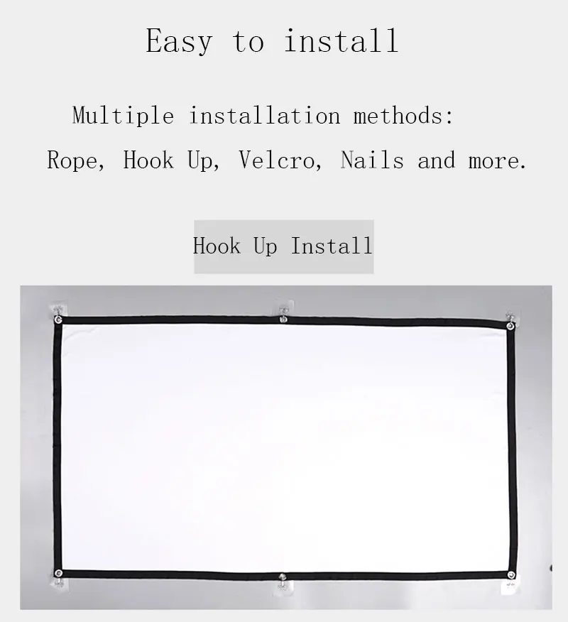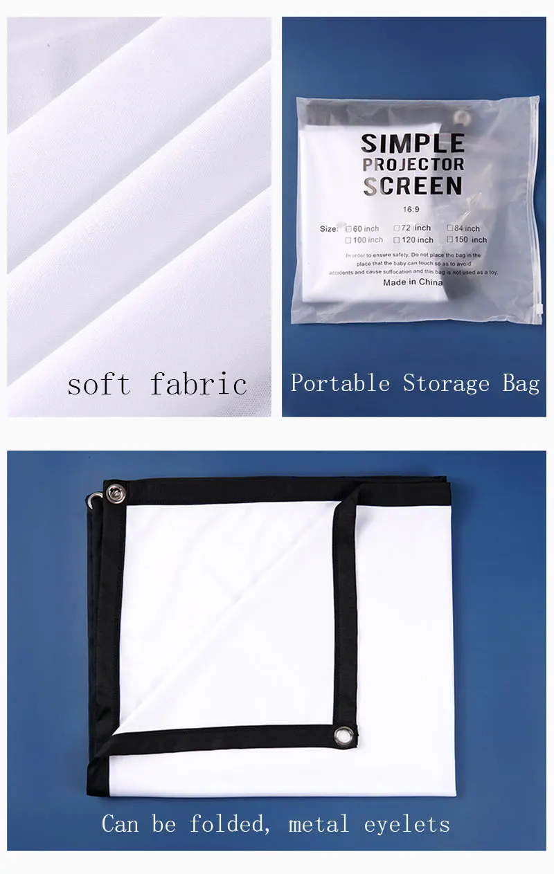 Thinyou 60 дюймов 72 дюйма 84 дюйма 100 дюймов 120 дюймов 150 дюймов 16:9 Полиэстер складной простой мягкий занавес Экран проектора для домашнего кинотеатра На открытом воздухе в помещении