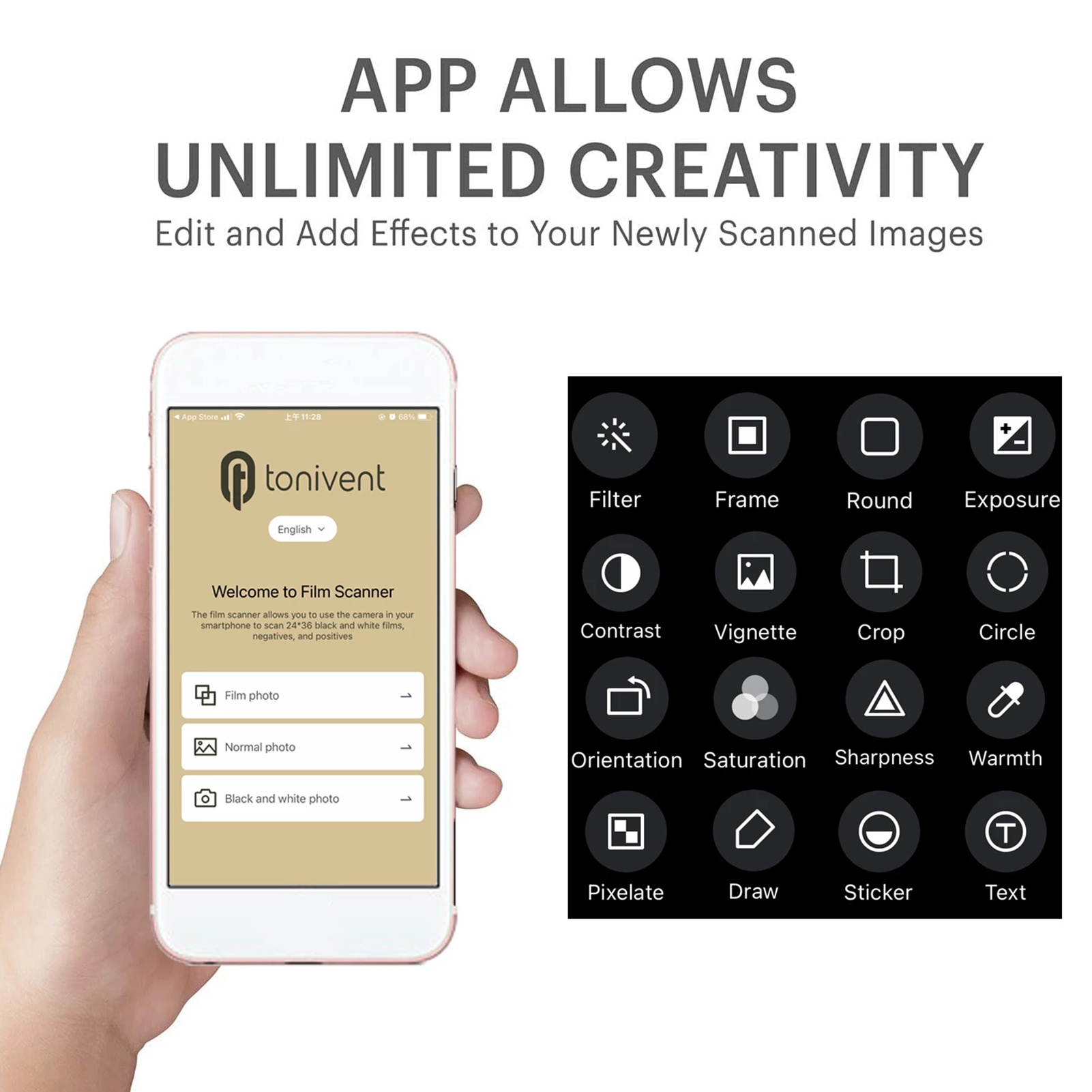 Бесплатное приложение для сканирования, редактирования и обмена-вы можете загрузить приложение, отсканировав код на коробке продукта, и использовать бесплатное приложение TON169 для захвата, обрезать, поворота и фильтрации; Отрегулируйте цвет и контрастность; поделитесь в социальных медиа!