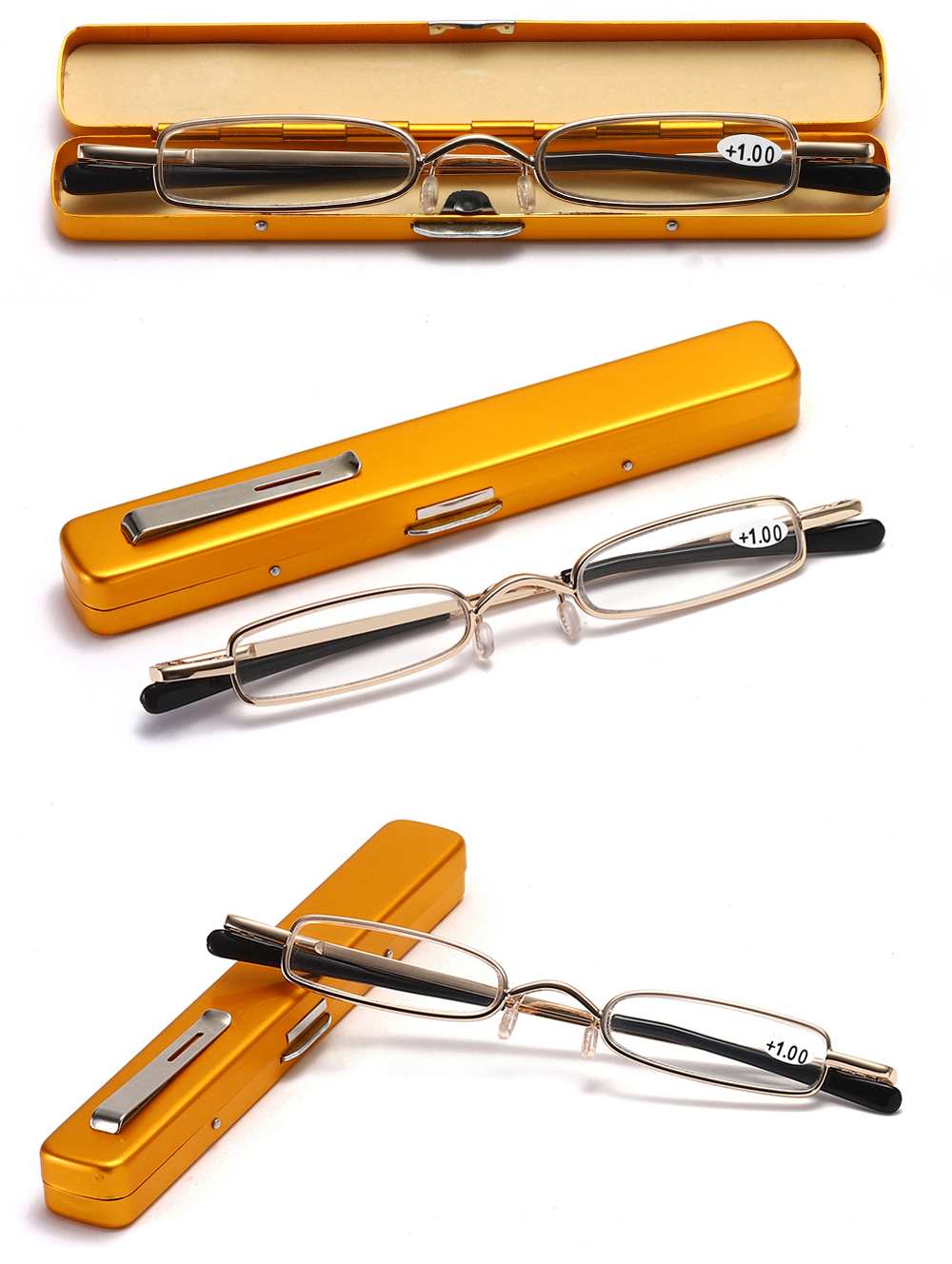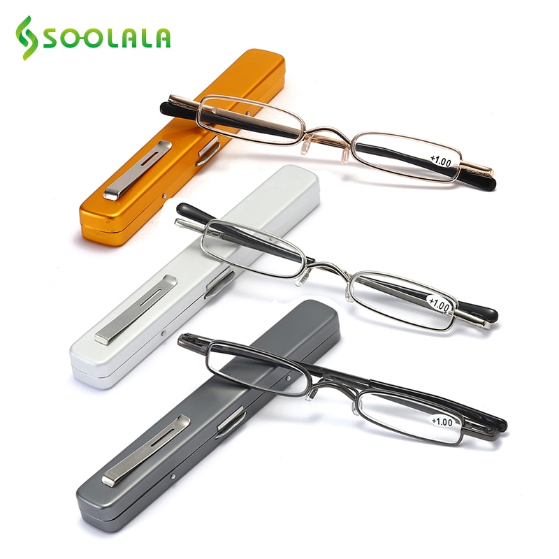 • -SOOLALA мини складные очки для чтения с зажимом для ручки, пресбиопические очки, Золотая лупа, очки, маленькие очки для чтения, складные