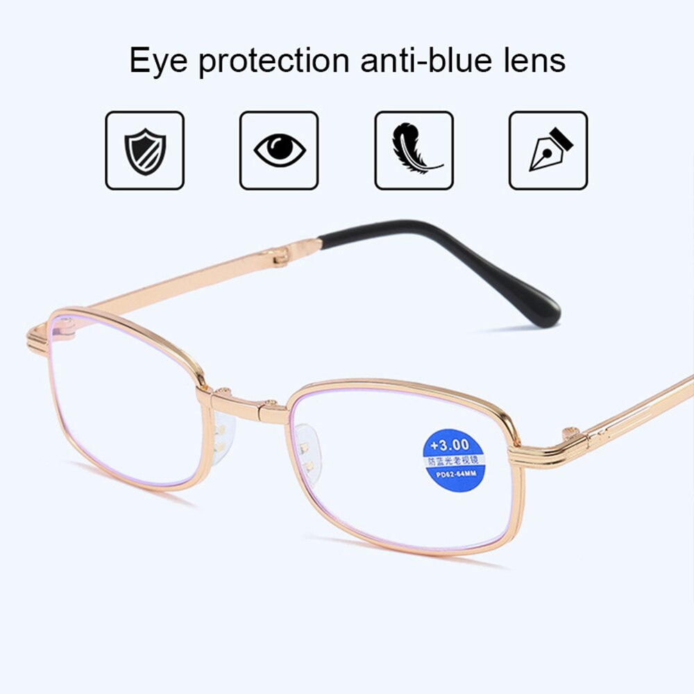 Складные очки для чтения в стиле ретро с защитой от сисветильник, с чехлом, для мужчин и женщин, роскошные брендовые телескопические очки для дальнозоркости, очки для пожилых людей