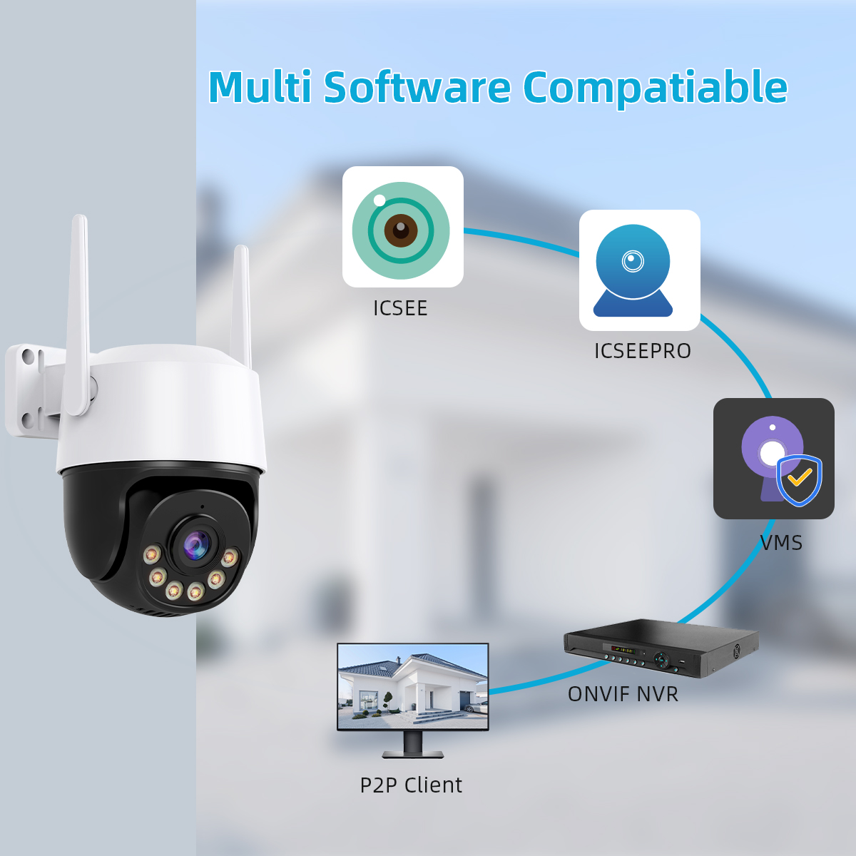 Поддерживает приложение iCSee для смартфонов (iOS, Android), планшеты (iPad, Android), клиент CMS для ПК с Windows. Это самый удобный способ смотреть из любого места и в любое время.