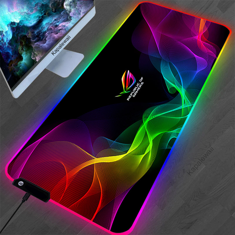 Скоростной игровой коврик для мыши ASUS RGB ROG, коврик для мыши для геймеров XXL, большой игровой коврик для клавиатуры и настольного компьютера, игровой коврик для ПК 100x50 со светодиодной подсветкой