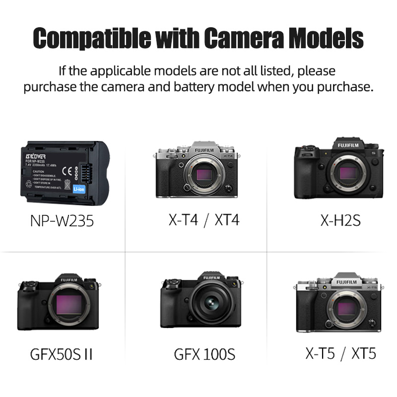 <span class="SnowProductCharacteristics_SnowProductCharacteristicsItem__titleContent__534v9">Compatible with Camera Models</span> For Fujifilm Camera Fuji XT4 X-T4 X-T5 X-H2S GFX100S GFX50S