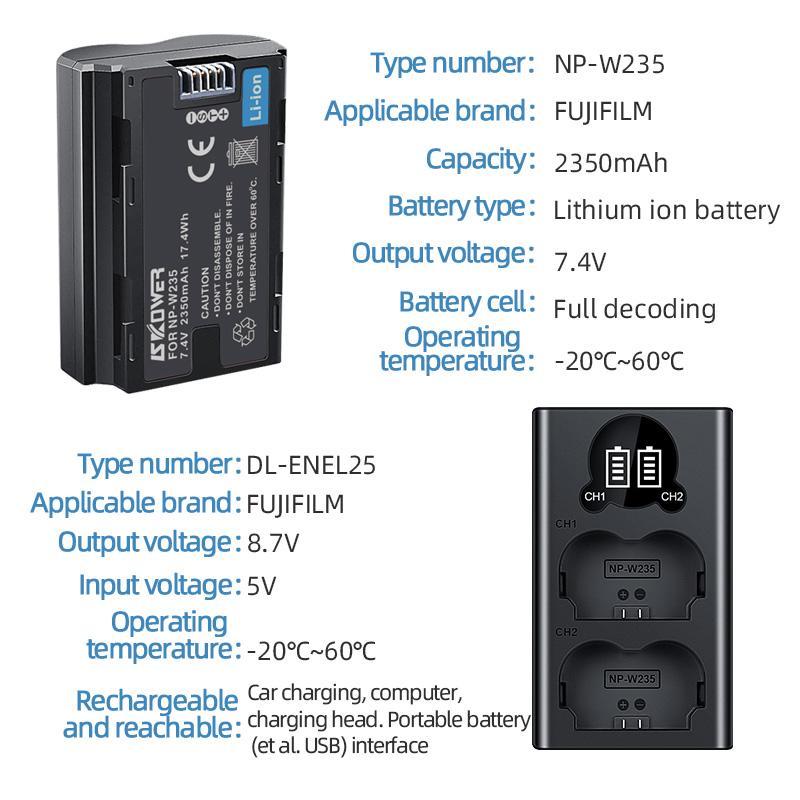 SKOWER NP-W235 аккумулятор для Fujifilm камера Fuji XT4 X-T4 X-T5 X-H2S GFX100S GFX50S + двойное зарядное устройство с USB кабелем NP W235 baterias