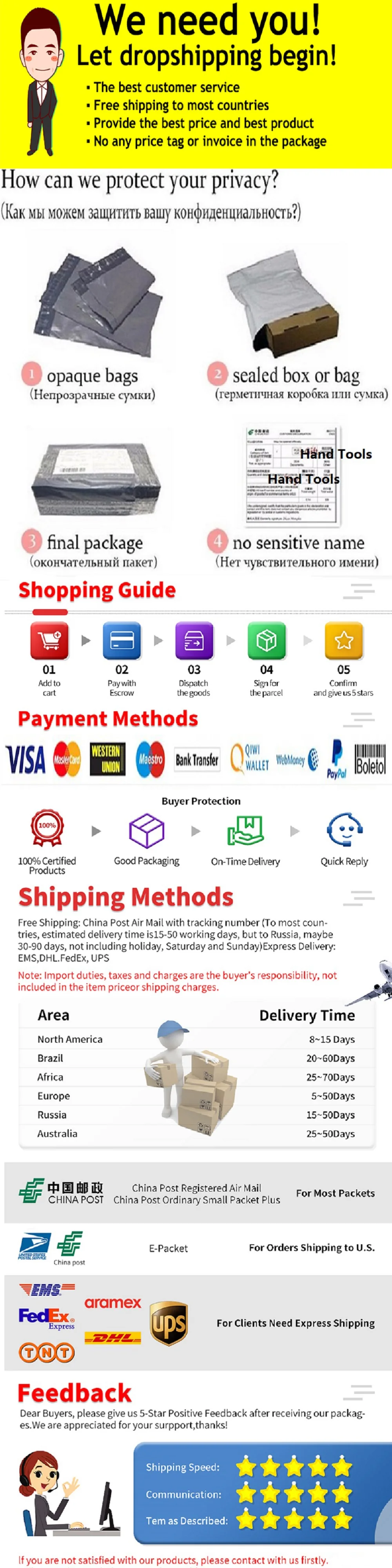 3. Все дропшиппинг заказы будут отправлены без счетов-фактур, квитанций, рекламных предложений, если вы оставляете примечания в заказе (если вы хотите, мы также можем предоставить.)