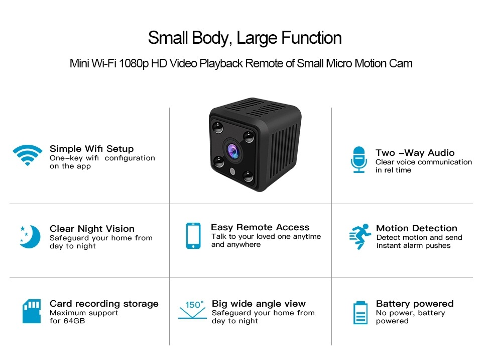 ● Широкий угол обзора 150 °, видя всю комнату, шире, чем традиционная камера