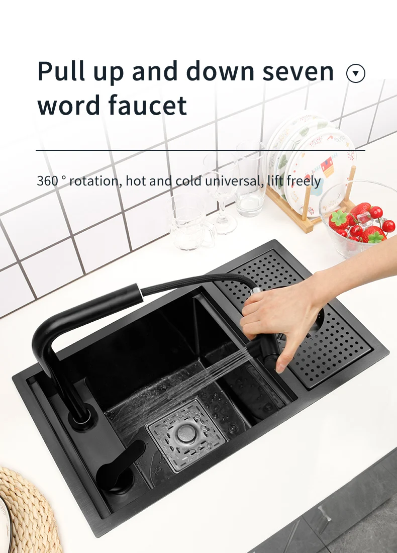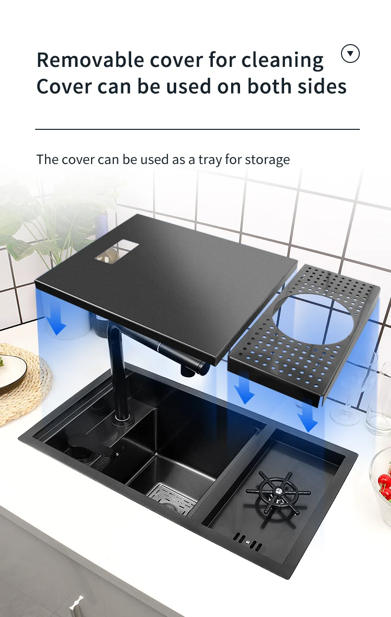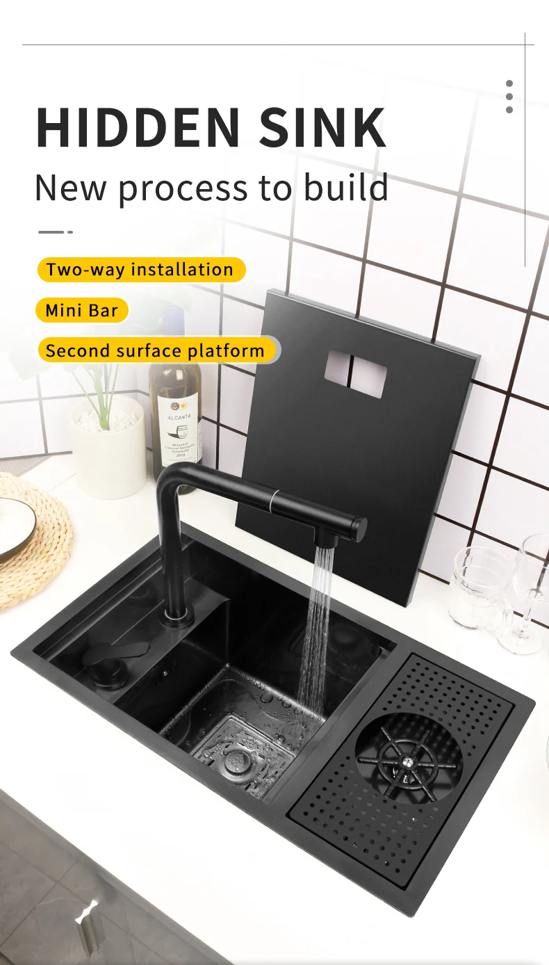 Скрытая раковина из нержавеющей стали нано, кухонная раковина черного цвета маленького размера с шайбой, над стойкой, для дома