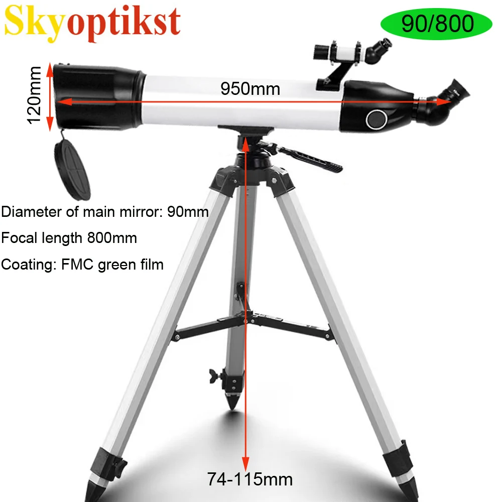 Skyoptikst 90/800 90/500 80/500 астрономический телескоп рефрактор HD астрономическое наблюдение FMC купить телескоп Бесплатная доставка