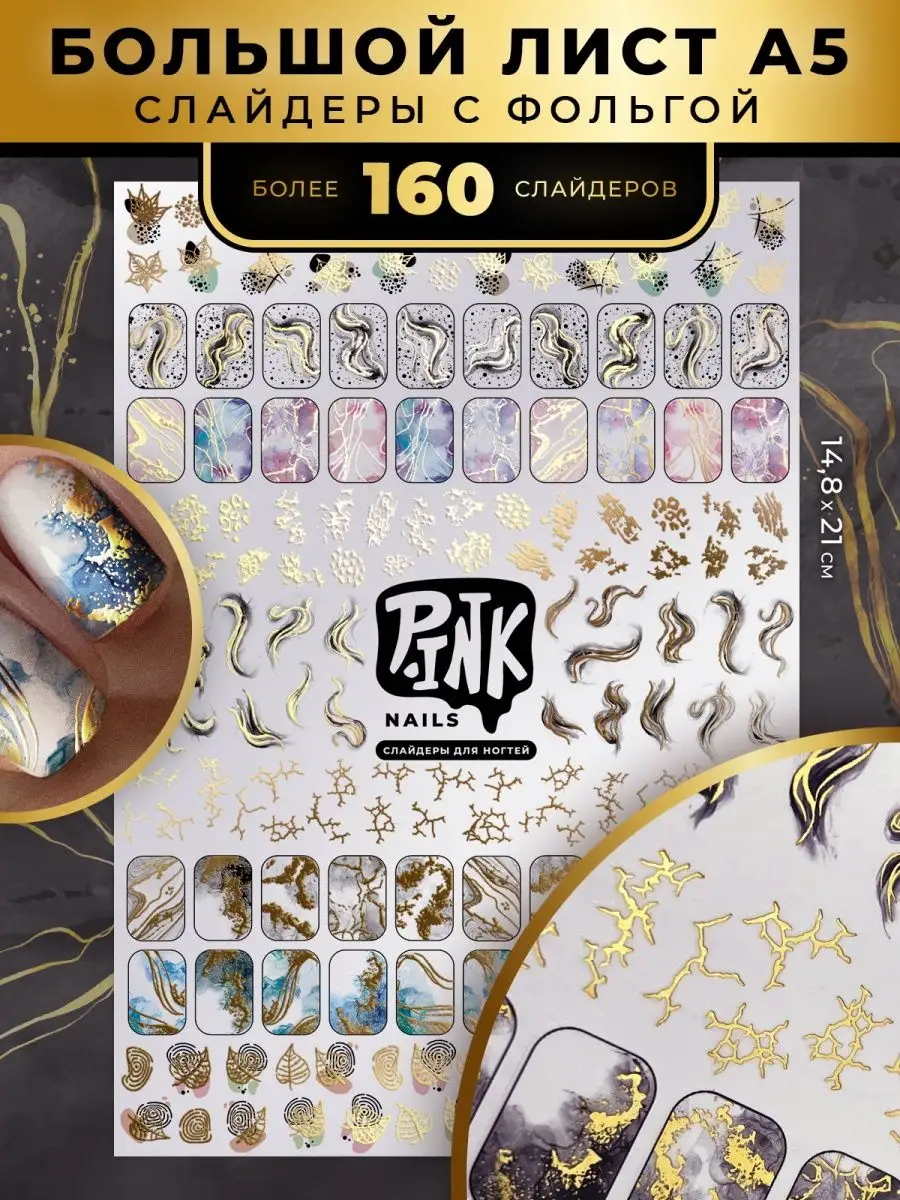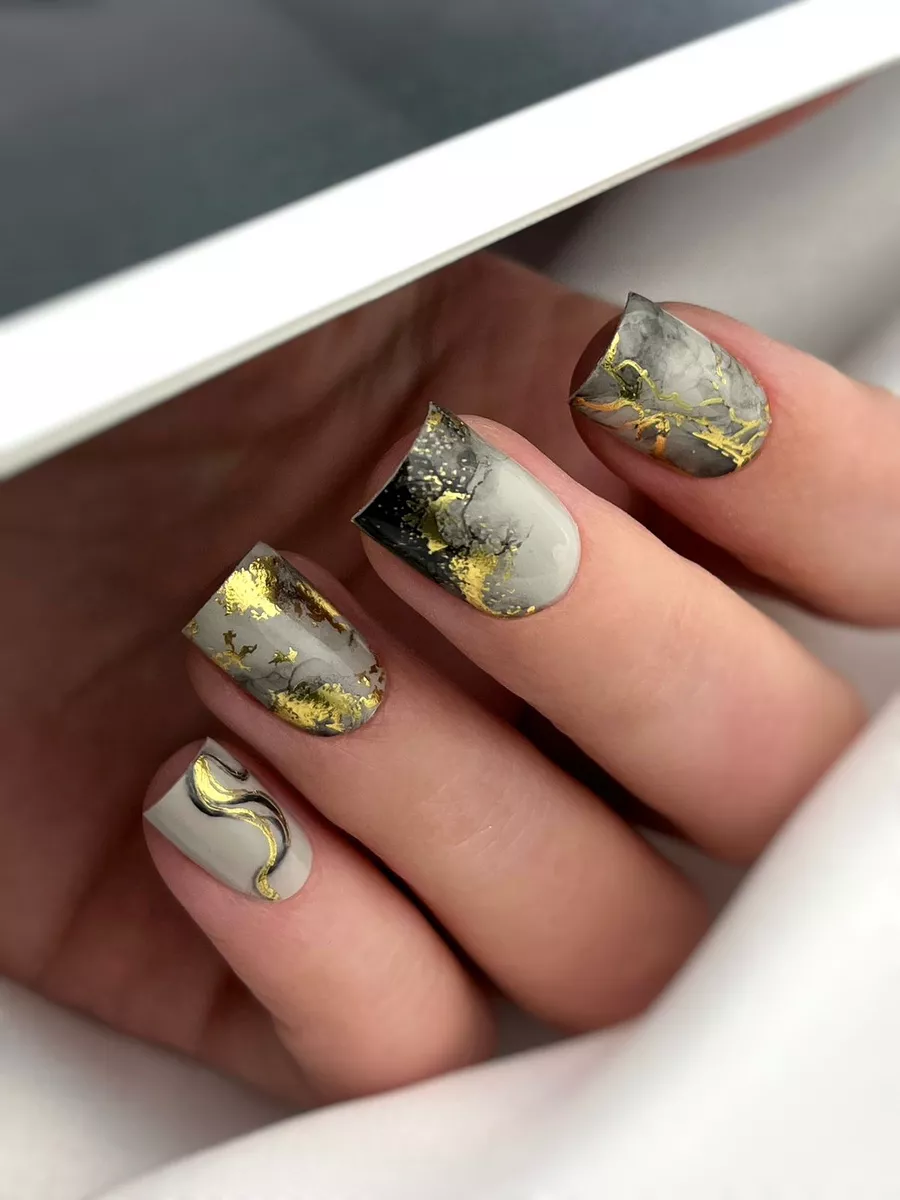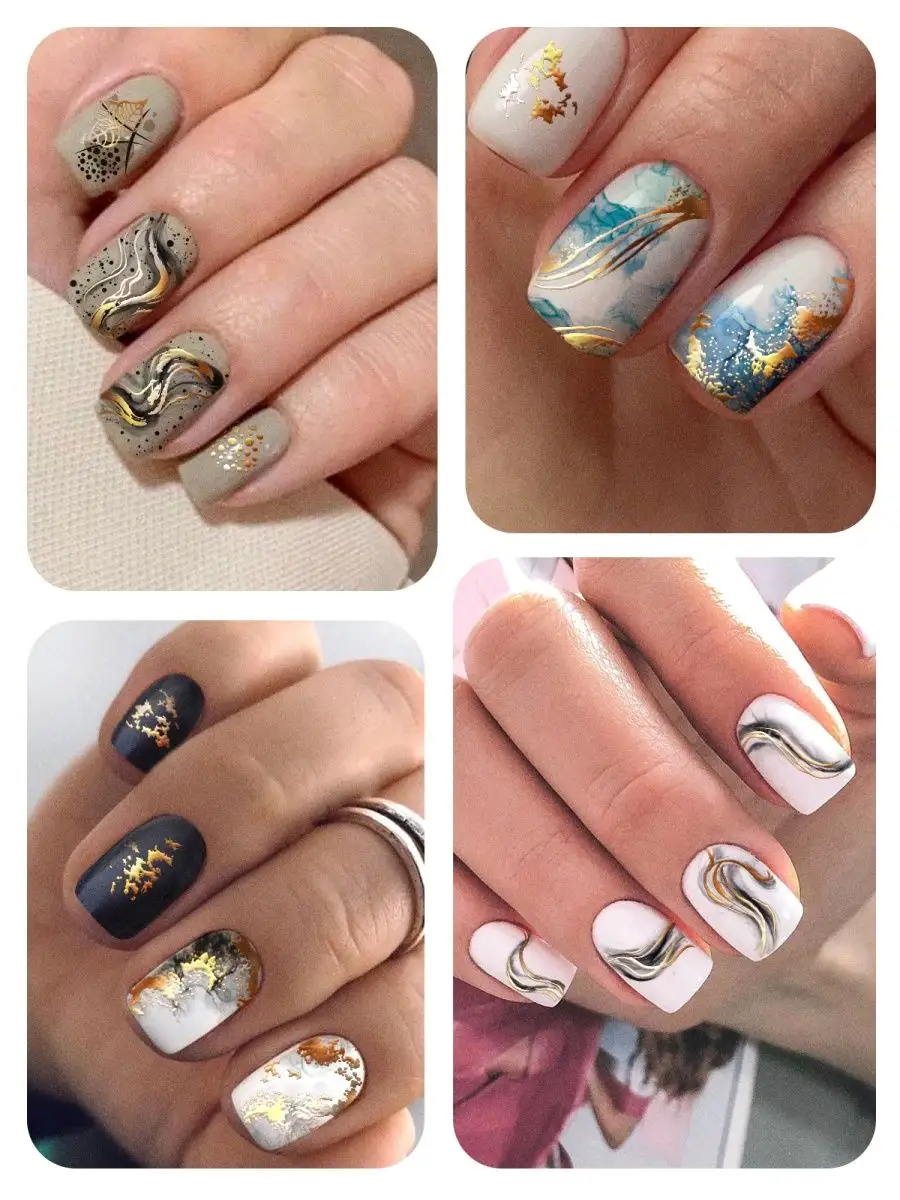Слайдеры наклейки для ногтей с золотой фольгой Мрамор