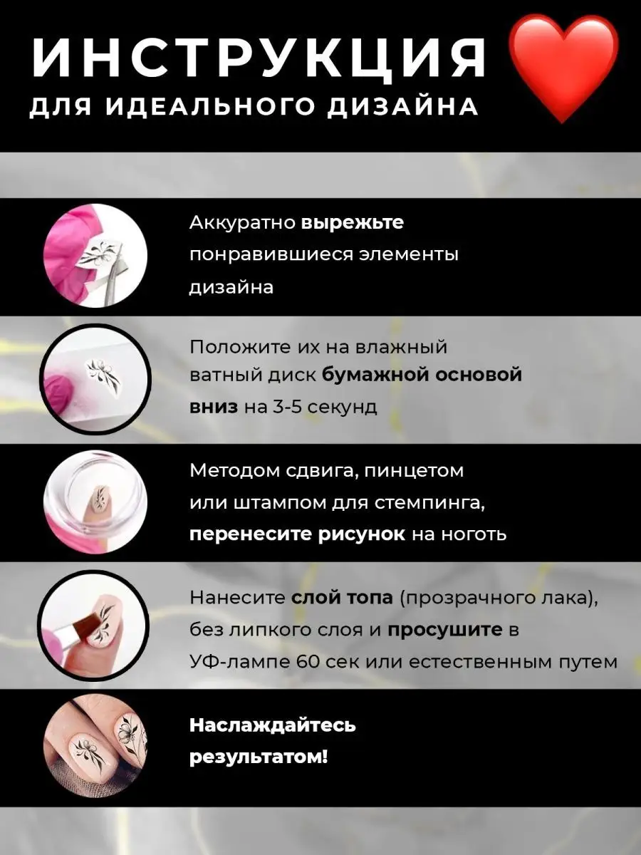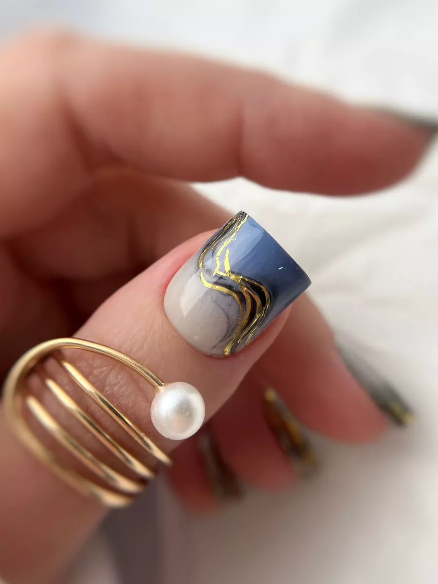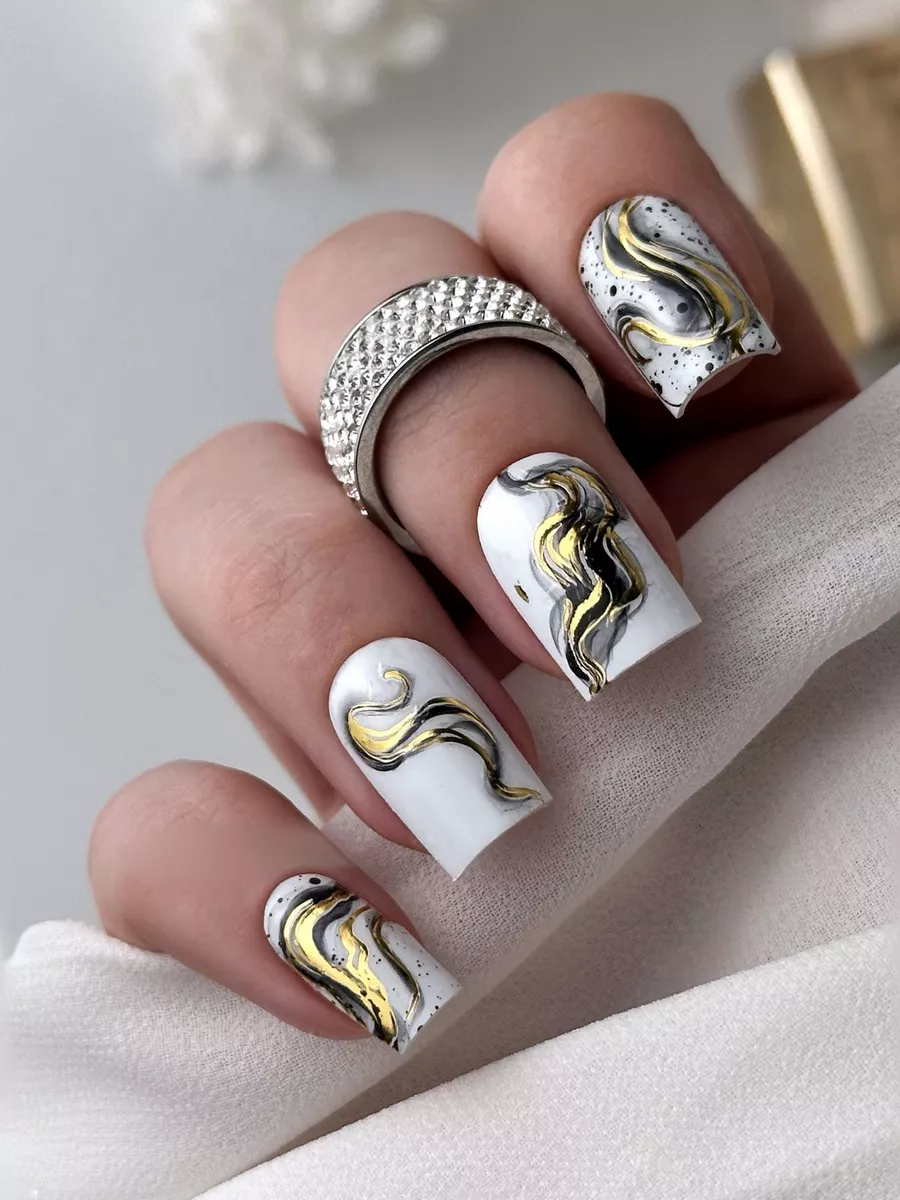 Слайдеры наклейки для ногтей с золотой фольгой Мрамор