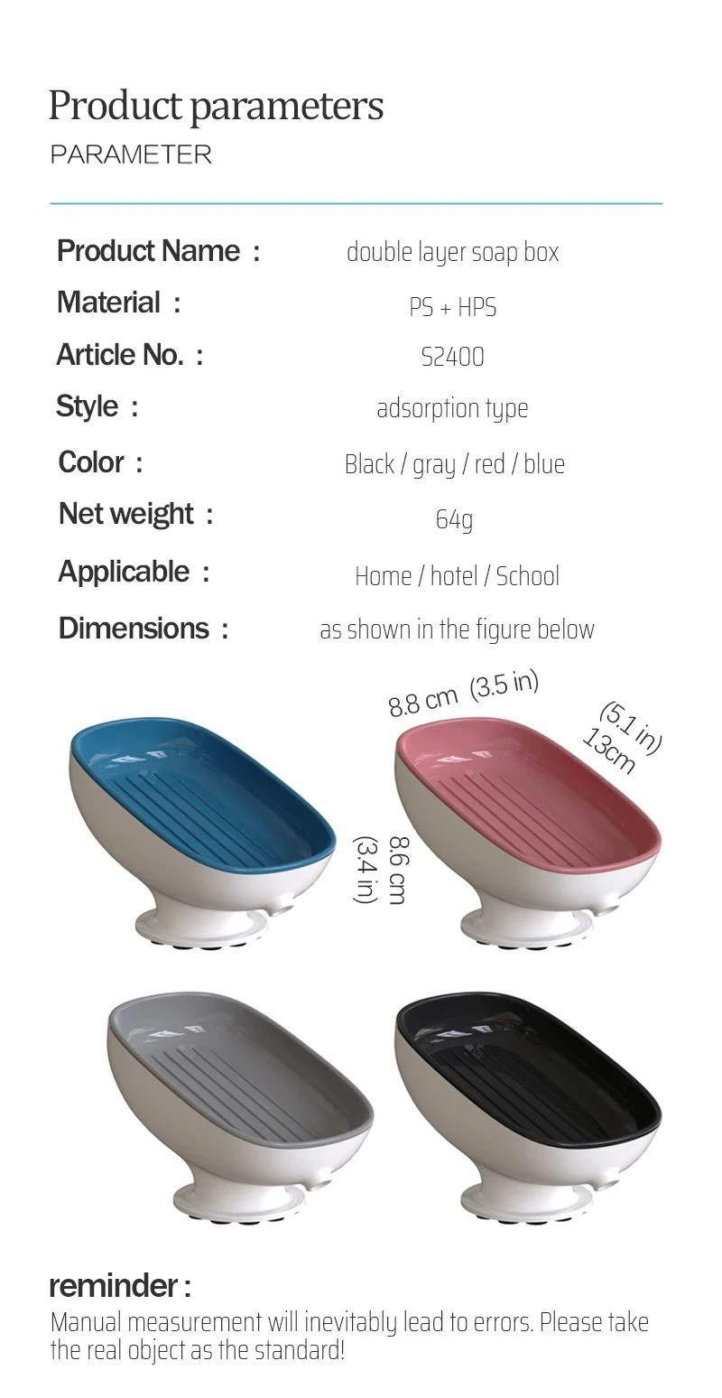 Простой стиль и легко чистить: это мыльница имеет двухслойный дизайн. Вы можете удалить лоток, когда вам нужно очистить мыльницу, легко чистить и сушить.