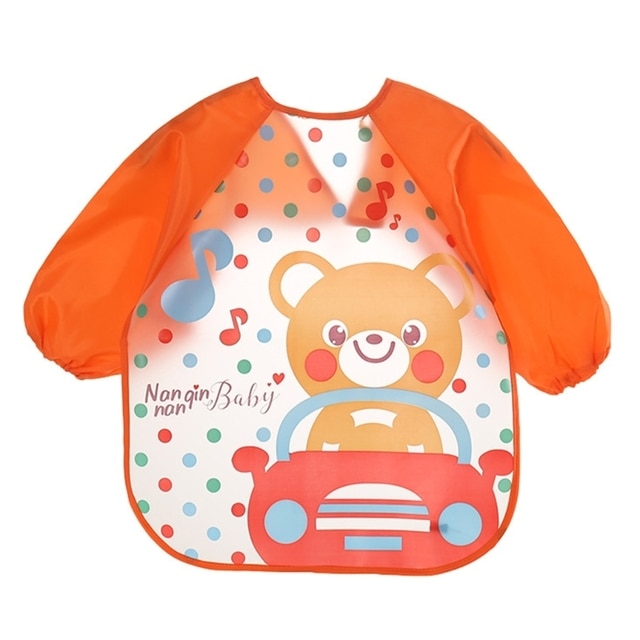 Удобно и легко носить фартук нагрудник: нагрудник отличного качества шить, эластичный рукав-манжета для предотвращения потока жидкости в рукав, легко носить, идеально подходит для ребенка малыша ежедневного использования, убедитесь, что ваши маленькие дети могут наслаждаться обедом, рисованием, а родители не беспокоятся о беспорядке.
