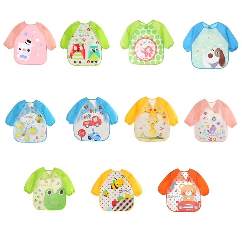 Ребенка комбинезон кормления нагрудник: ребенок комбинезон кормления нагрудник разработан с мультфильм шаблон печатных, водонепроницаемый и с длинными рукавами полный охват нагрудник, чтобы предотвратить или проливает беспорядок одежды, супер удобно и держать вашего ребенка грудь и одежду в чистоте.