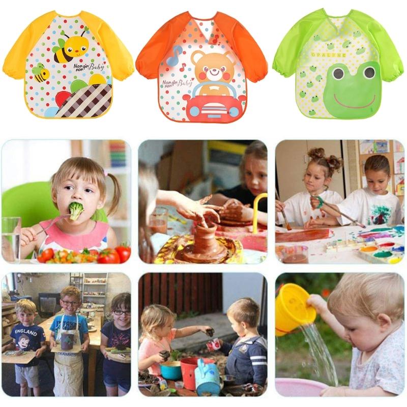 Удобно и легко носить фартук нагрудник: нагрудник отличного качества шить, эластичный рукав-манжета для предотвращения потока жидкости в рукав, легко носить, идеально подходит для ребенка малыша ежедневного использования, убедитесь, что ваши маленькие дети могут наслаждаться обедом, рисованием, а родители не беспокоятся о беспорядке.