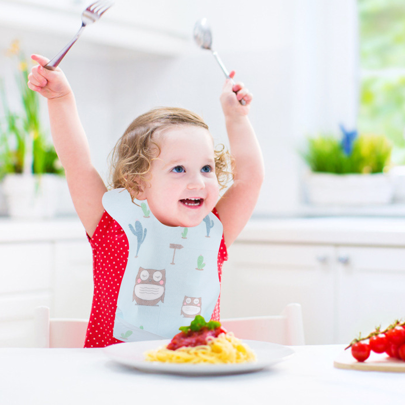Этот нагрудник изготовлен из нетканого материала, который полезен для здоровья и практичен. Мультяшный дизайн очень нежный и может содержать вашу одежду в чистоте и порядке во время еды.