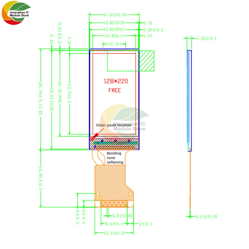 1,08 дюймовый TFT цветной экран IPS разрешение дисплея 128*220 13pin Драйвер IC GC9203 TFT смарт-браслет экран
