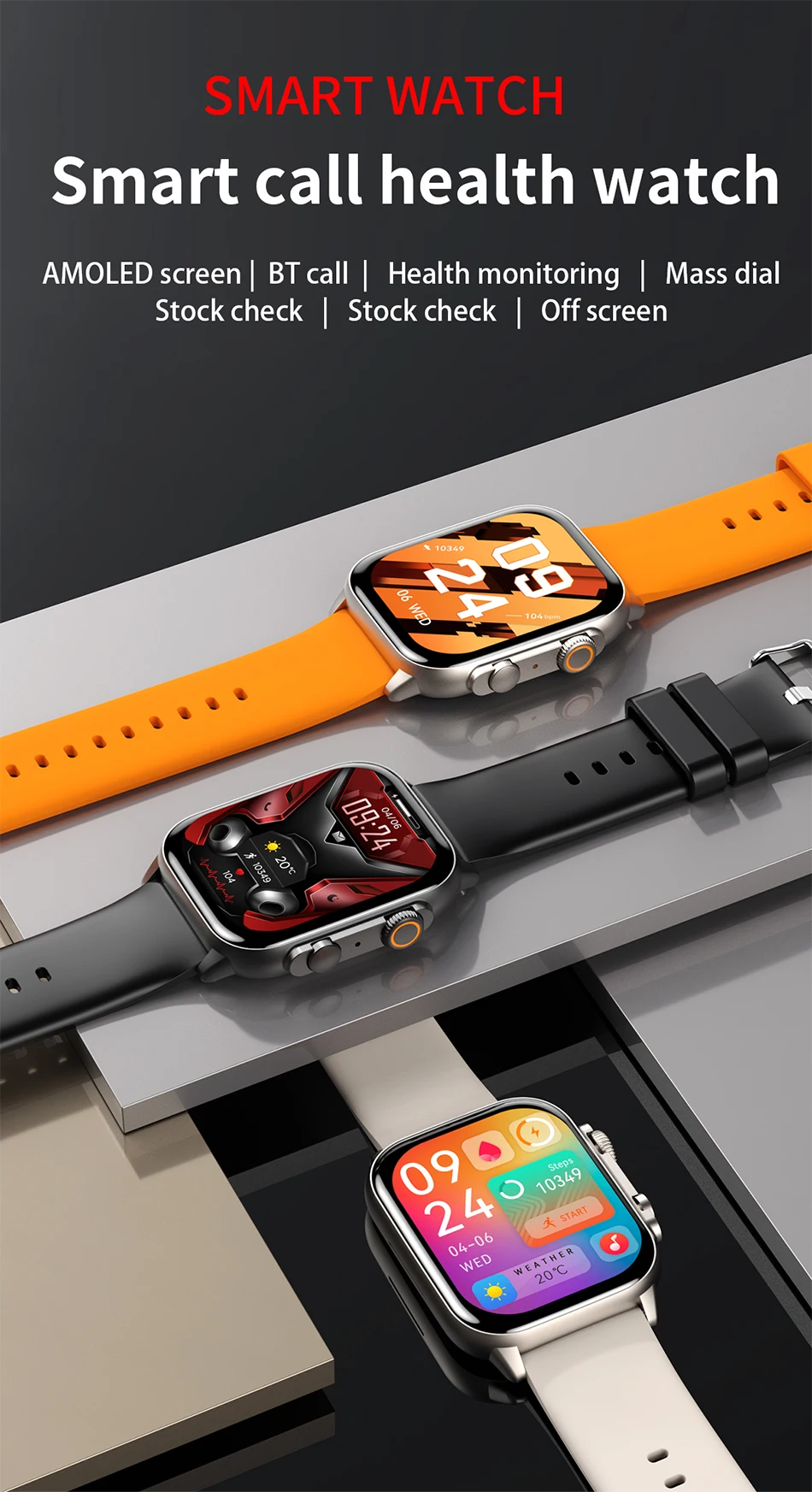 Экран AMOLED/вызов BT/мониторинг здоровья/массовый циферблат/проверка запаса/с экрана