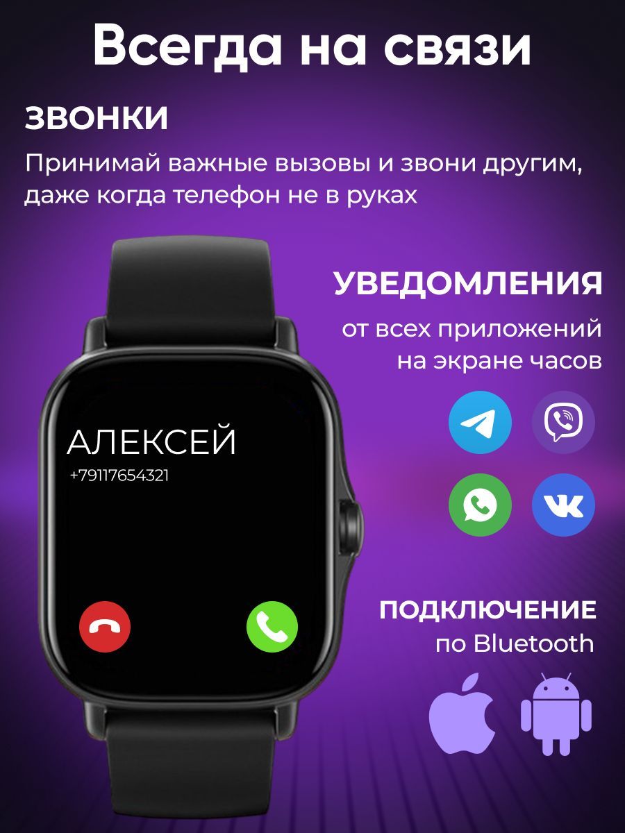 Не пропускай звонки и уведомления! Будь всегда на связи!Ты можешь звонить и отвечать на звонки прямо со смарт-часов, благодаря встроенному микрофону и динамику. Для этого синхронизируй часы с телефоном по Bluetooth и будь всегда на связи.